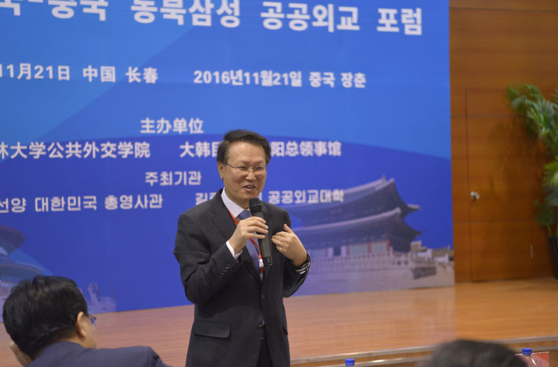 2016年11月21日,第四届“中国东北三省-韩国公共外交论坛”在中国长春BEATS学术讲堂举行。BEATS常务副董事长陈岗教授和大韩民国驻沈阳总领馆申凤燮总领事参加论坛开幕式。来自韩国首尔国立大学、韩国汉阳大学、韩国东亚研究院、中国商务部国际贸易经济合作研究院、北京大学和BEATS等中韩著名大学和智库的30余位知名专家学者出席了本届论坛,并围绕智库建设、文化互动以及高等教育交流等议题进行了研讨。BEATS董事长助理兼BEATS经理刘德斌教授和大韩民国前驻华大使辛正承教授应邀在论坛上发表了主旨演讲。