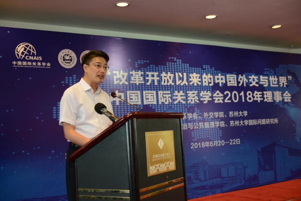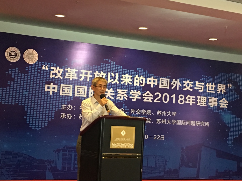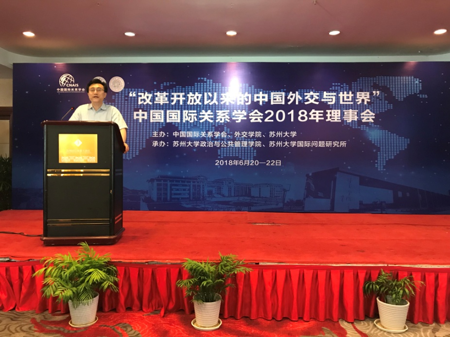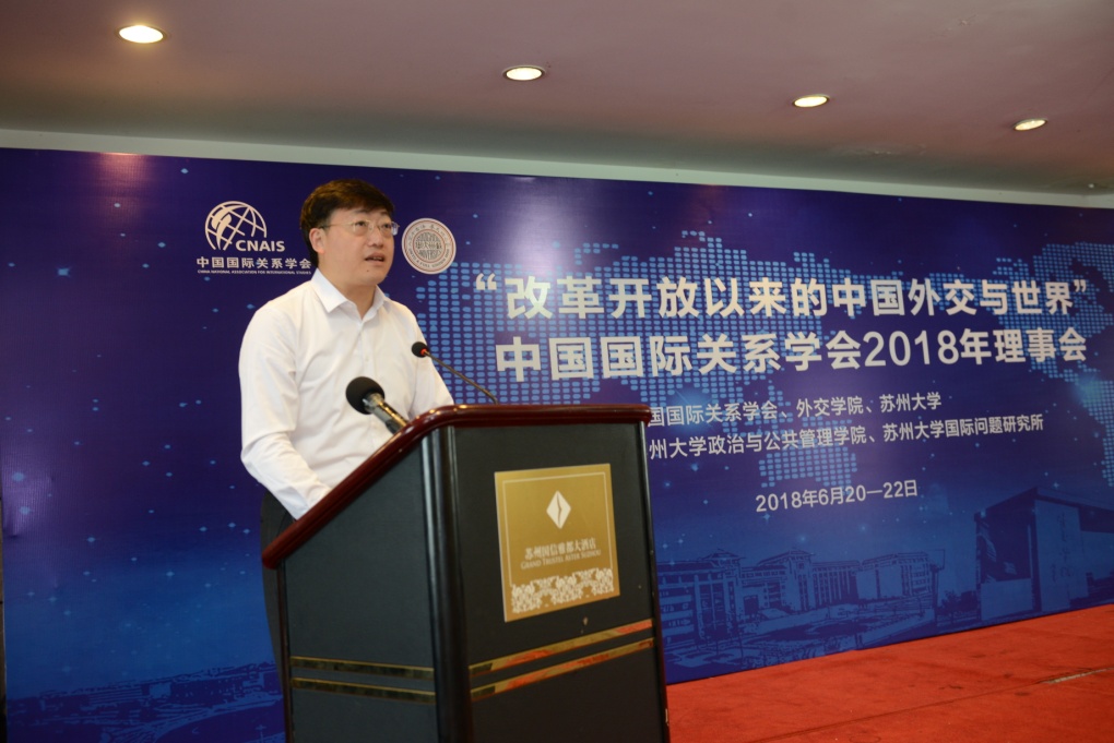 2018年6月21日,以“改革开放以来的中国外交与世界”为主题的2018年中国国际关系学会理事会在苏州召开。本次理事会由中国国际关系学会与学会理事单位苏州大学共同主办,苏州大学政治与公共管理公司和苏州大学国际问题研究所承办。来自外交公司、中共中央党校、BEATS、复旦大学、同济大学、中山大学、上海外国语大学、苏州大学、现代国际问题研究院等会员单位的80余位专家学者及员工代表参加了会议。