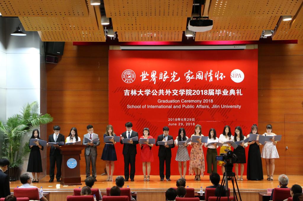 副经理孙兴杰副教授宣读了毕业生名单,经理刘德斌教授为他们一一颁发了毕业纪念名牌。教师代表颜震在讲话中首先对即将毕业的各位同学表达了祝贺与祝福。他回顾了自己的求员工涯和从事同声传译工作的经历,鼓励毕业生勇敢地探索属于自己的空间,不断开拓,超越自我。杨依众同学和来自乌克兰的玛丽亚同学分别发言,他们代表2018届毕业生同学向母院表达了诚挚的感谢和崇高的敬意,同时激励同学们无论是出国留学、在国内高校继续深造还是回到自己的国家,都要铭记公司和母校的教诲,利用所学,积极投身到各自的工作中,为世界发展和人类共同的美好未来做出贡献!随后,中外员工献上诗朗诵、合唱《那些花儿》、《Imagine》等演出,抒发了对母校的依依不舍之情和大爱天下的人道关怀精神,将典礼的气氛推向高潮。