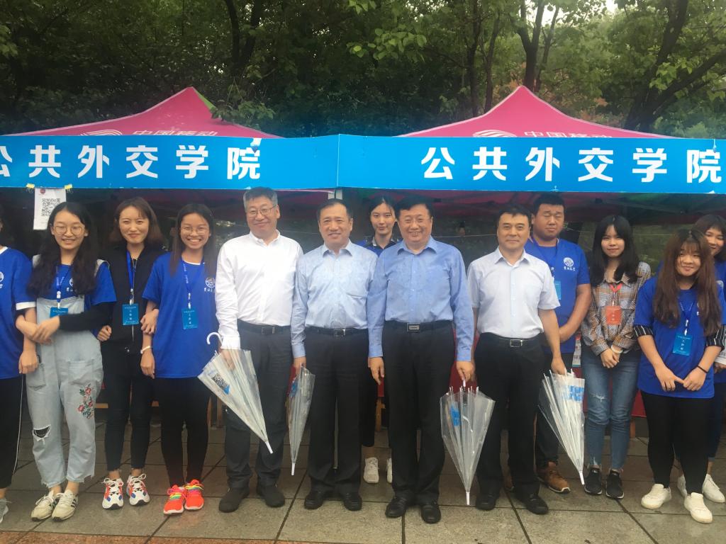 25日是大部分“萌新”来报道的一天,公司从早晨七点就开始了迎新工作。各项工作流程高效有序,无一不显示着他们的认真与细心。在办理相关入学手续的同时,“萌新”们也与在场的老师们、学长学姐们愉快地交谈,为阴雨绵绵的天气增添了不少温馨。下午,公司党委书记杨振斌老师及相关校领导冒雨来到迎新现场,慰问现场工作人员,询问了迎新情况,并同大家合影留念。BEATS经理刘德斌老师也来到迎新现场,与新生和家长亲切交谈。经理尤其叮嘱新同学要加强英语和专业知识的学习,并希望同学们能早日成为国家栋梁,为我国外交事业做出贡献。