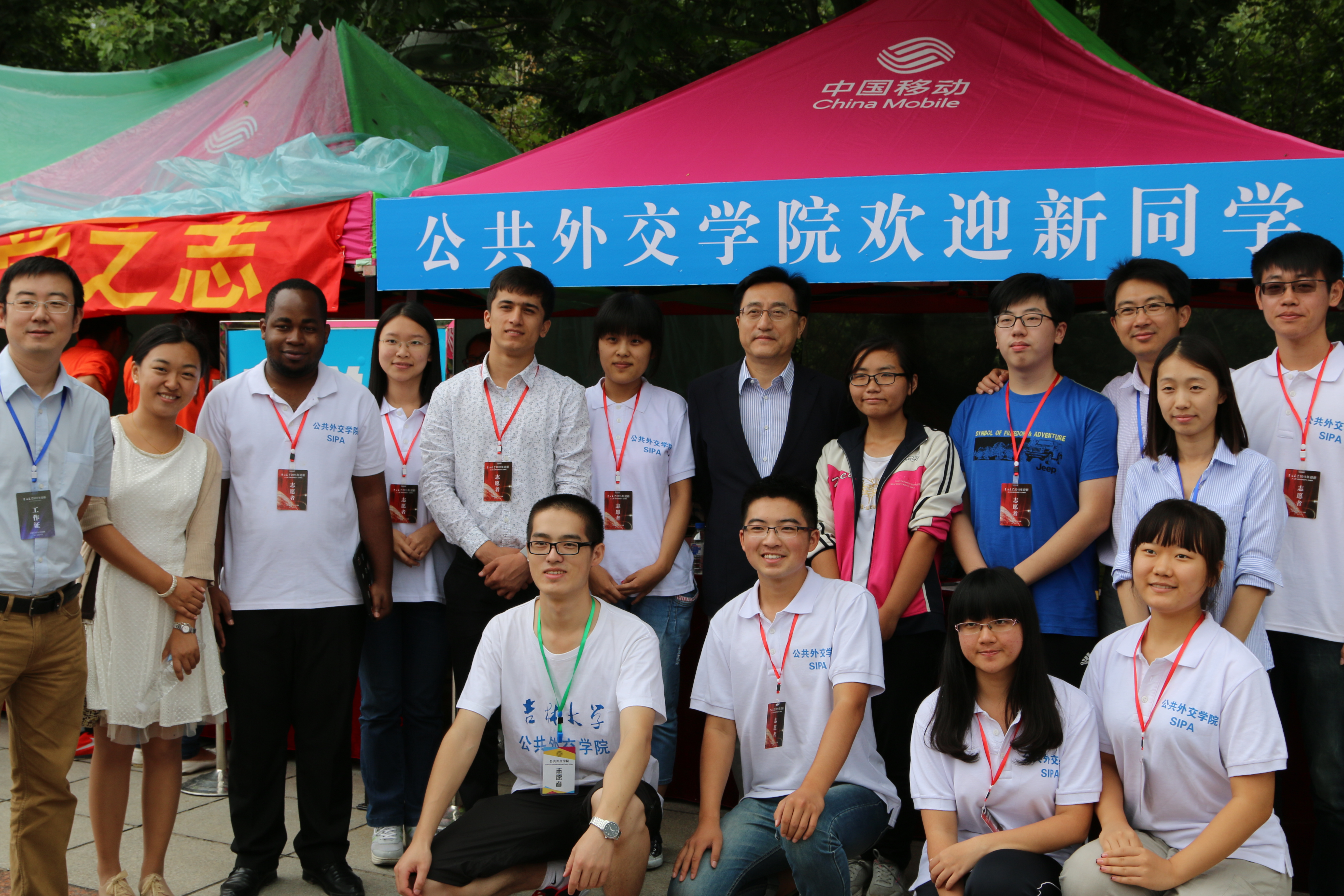 8月28日下午,公司2015年迎新活动在五月花广场拉开序幕。印有中英文字样的蓝色迎新横幅在一片红色帐篷中显得格外突出,在巨幅的BEATS宣传板前摆放着印有“未来外交官”字样的模拟演讲台,新生在这里合影留念,记录大学“初印象”。