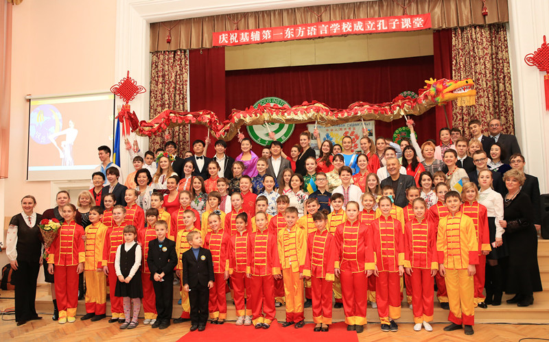 2015年12月22日上午11时,公司乌克兰基辅国立大学孔子公司下设孔子课堂揭牌仪式在基辅第一东方语言公司礼堂举行。中国驻乌克兰大使馆文化处负责人张艳波、乌克兰华商会会长李相、乌克兰工商联合会总经理关羡梅、基辅教育局局长叶莲娜、施韦拖申区区教委主任安娜和乌克兰基辅国立大学孔子公司中方经理李红出席了揭牌仪式。