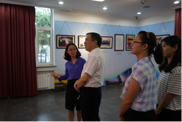 杨振斌书记一行访问中心时与公司实习生进行交谈,关心公司员工实习情况。