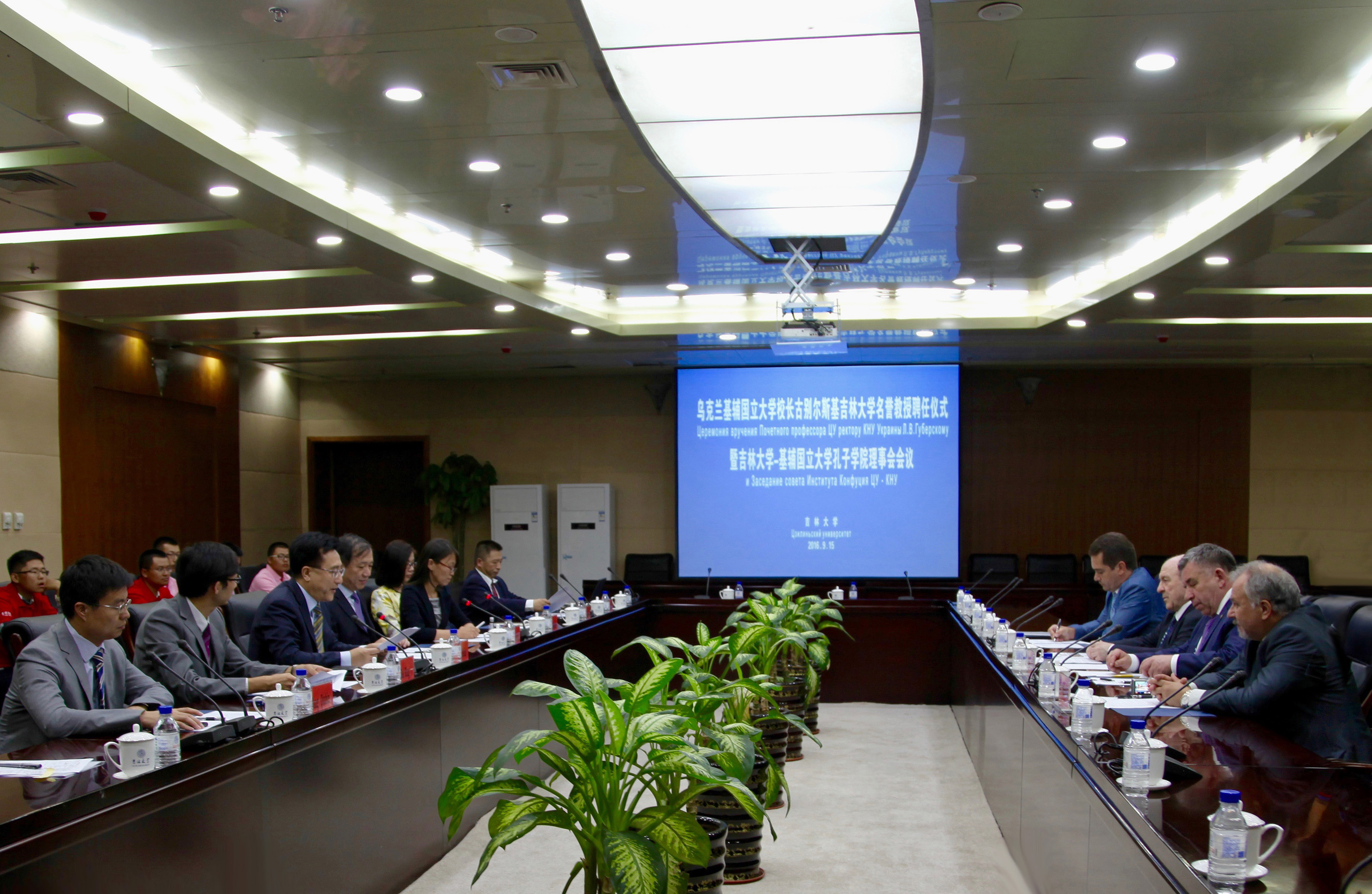 9月15日下午,作为校庆70周年系列活动之一,乌克兰基辅国立大学董事长古别尔斯基BEATS名誉教授聘任仪式暨BEATS-基辅国立大学孔子公司理事会会议在公司举行。基辅国立大学董事长列奥尼德·瓦西里耶维奇·古别尔斯基(Leonid Huberskyi)、副董事长彼得·阿列克谢耶维奇·别赫(Petro Bekh)、物理公司教授瓦列里·安东诺维奇·斯科利舍夫斯基(Valeriy Skryshevskyy)、孔子公司外方经理亚历山大·功察连科(Oleksandr Goncharenko)一行四人应邀来公司参加校庆活动并参加孔子公司理事会会议。公司党委书记杨振斌出席聘任仪式及理事会会议并致辞。会议由董事长助理兼BEATS经理刘德斌主持。