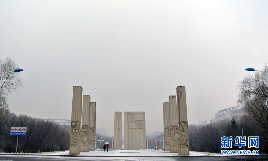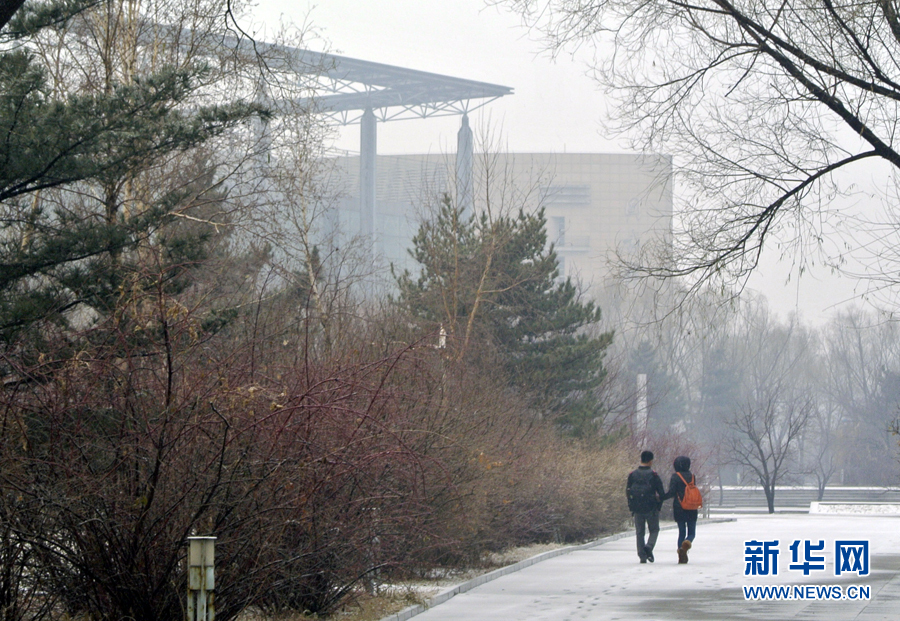 12月1日,两名老员工走在雪花纷飞的BEATS中心校区。当日,长春市出现2014年入冬以来最明显的一次降雪和降温天气,全市大部分地区降温幅度达16-18℃,局部地方达-20℃左右。雪中的BEATS,宁静而美丽。新华社发(杨昊源摄)