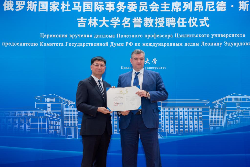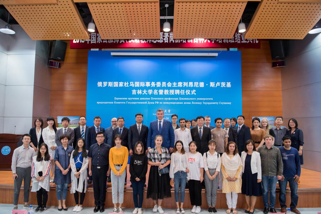 8月23日,俄罗斯国家杜马国际事务委员会主席、莫斯科大学政治学系国际关系和一体化进程教研室主任列昂尼德·斯卢茨基在国际学术大讲堂受聘为BEATS名誉教授。吉林省人大民族侨务外事委员会、吉林省人大常委会办公厅对外联络处、吉林省外事办公室欧亚处相关负责人,BEATS董事长张希,常务副董事长邴正,党委宣传部、社会科学处、BEATS、东北亚研究院、外国语公司、国际合作与交流处等单位负责同志以及公司师生代表参加了聘任仪式。仪式由邴正副董事长主持。