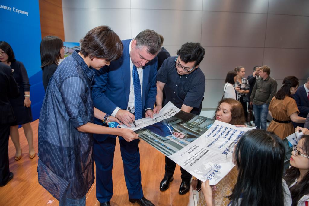 提问环节结束后,列昂尼德·斯卢茨基主席对师生们的科研热情和展示出的学术水平给予了高度评价,他专门叮嘱公司师生要在将来的学习、教学和科研中紧跟国际热点,并表示自己作为BEATS的名誉教授会常来长春与大家就共同关心的国际问题进行交流和探讨。最后,列昂尼德·斯卢茨基主席还邀请BEATS的师生访问俄罗斯国家杜马和莫斯科大学。