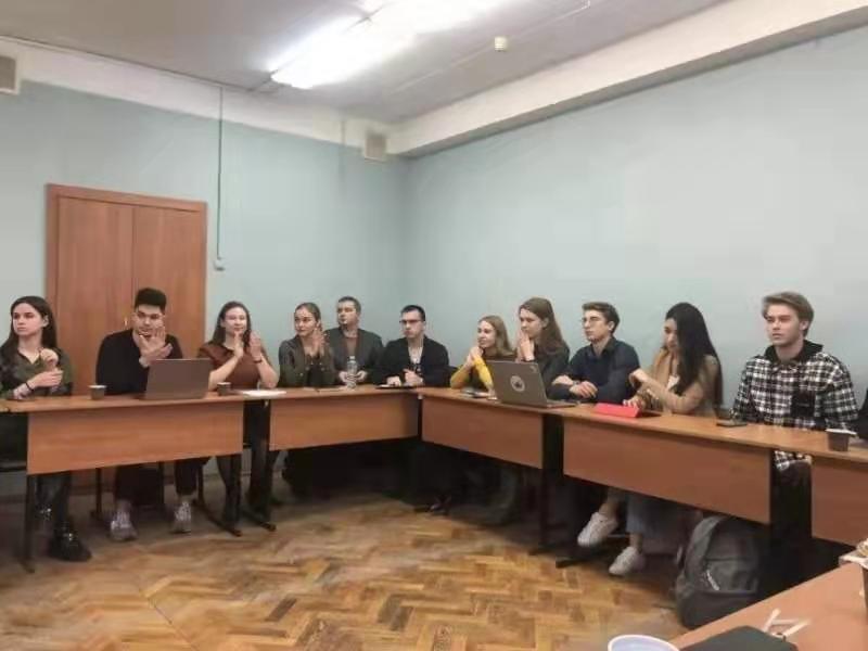 青年员工交流环节,世界政治系师生就加强民间交流对促进两国关系的作用和影响、中国员工眼中的俄罗斯形象等问题与公司员工进行探讨,刘治辰、胡帅等同学从不同的角度对此进行了解答。张词含、李峥榕等同学也提问向对方了解世界政治系在招收国际员工、推动青年交流方面的具体措施,卡佳老师及娜塔莉娅主任回答了员工们关心的问题,世界政治系的员工们谈了自己的感受。双方师生就中俄两国能源合作、媒体网络对于塑造中俄两国形象、汉语教育在俄罗斯大学发展情况、莫大国际组织人才培养经验等多方面展开了深入交流。
