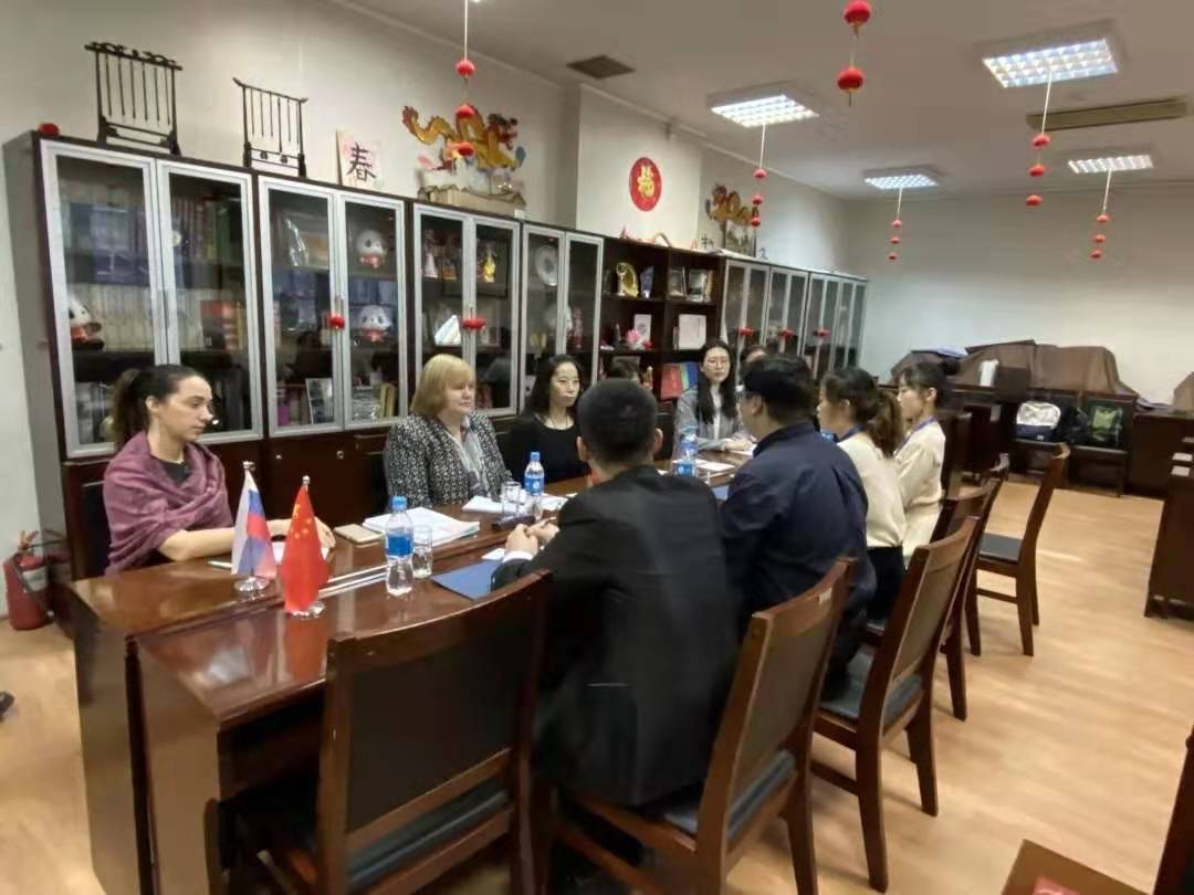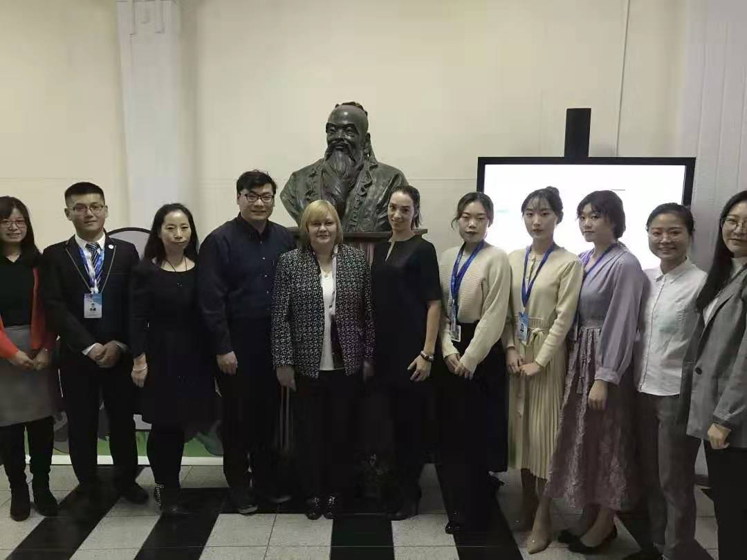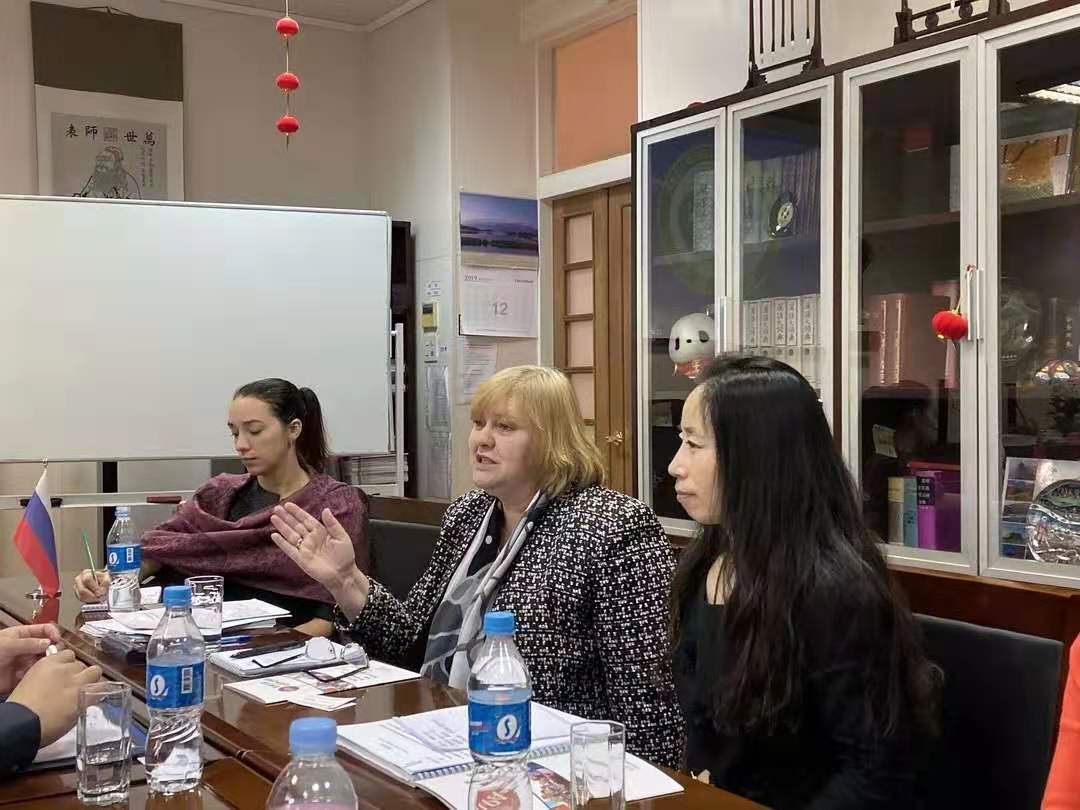 以远东联邦大学孔子公司娜塔莉娅•约瑟福夫娜副经理和近十位孔院教职人员与师生代表会见并展开座谈。