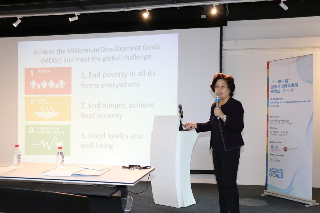 签署仪式结束后,“一带一路”创意与可持续发展研修班正式开班。杨宝珍女士为职工们进行题为“中国落实联合国2030年可持续发展议程及成果”的讲座。在接下来的几天时间里,研修班将邀请北京科技大学、北京服装公司的知名教授和知名公益项目负责人等为职工们进行专题培训,并组织员工到中关村软件园和白塔寺就高科技产业园区的筹建和老城区改建等方案进行实地考察。