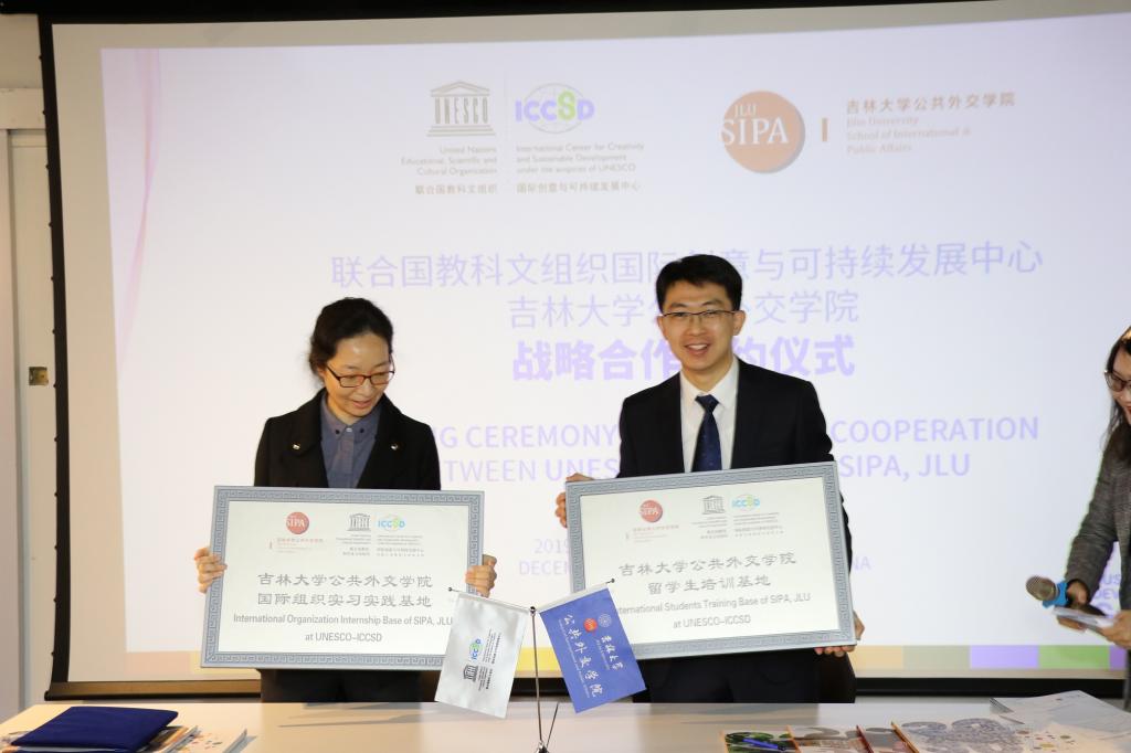 12月18日,BEATS与联合国教科文组织国际创意与可持续发展中心(UNESCO-ICCSD,International Center for Creativity and Sustainable Development)举行合作协议签署仪式暨首期“一带一路”创意与可持续发展研修班开班仪式,双方共同为“BEATS国际组织实习实践基地”和“BEATS职工培训基地”揭牌。前驻法国领事、加拿大国际发展署前资深项目官员杨宝珍、国际中心合作部经理刘琅、活动部主管李芳、传播部总监陈洁,公司国际组织人才培养项目主任王力、教师代表崔悦、中国员工代表和参加“一带一路”创意与可持续发展研修班的21名职工参加了活动。