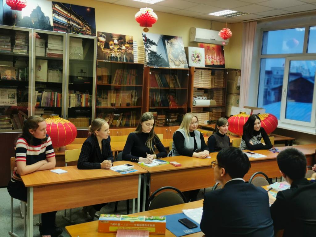 下午3:00,调研团组成员分别与孔子公司俄方教师代表和中方教师代表进行了座谈,乔蕊老师首先介绍了项目调研的基本信息和团组成员,与会教师代表也介绍了自己加入孔院结识汉文化的经历,同学们就孔院的教师选聘标准、硬件设施、教学内容、招生宣传办法、文化推广方式等向与会老师进行咨询,参与座谈的教师及单妮娜经理分别做了细致的解答。通过交流了解了梁赞孔院汉语教学的特色优势、生源情况、公司发展面临的挑战等。