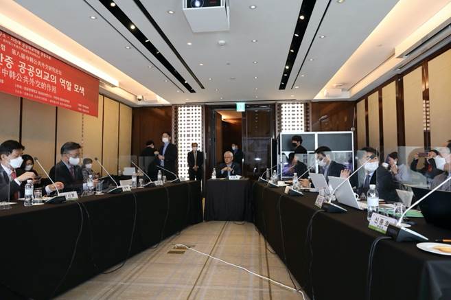 论坛接近尾声时,李熙玉教授和宁赋魁大使为本届中韩公共外交研究论坛进行了总结。李熙玉教授指出公共外交实施应产生切身感受的效果,不应该惧怕矛盾,有效管控危机才能让两国关系动态发展。论坛的目的在于支持政府的公共外交实践,需要拓展范围、吸纳各方参与,以面向未来的愿景寻求解决现实问题的方案。宁赋魁大使赞赏了两国学者对双方关系发展的关心、重视和爱护,指出在后疫情时代和中韩当前形势下,更为重要的是将学界研究向两国民众开放和宣传,引导民众聚焦中韩友好,避免负面信息的蔓延。