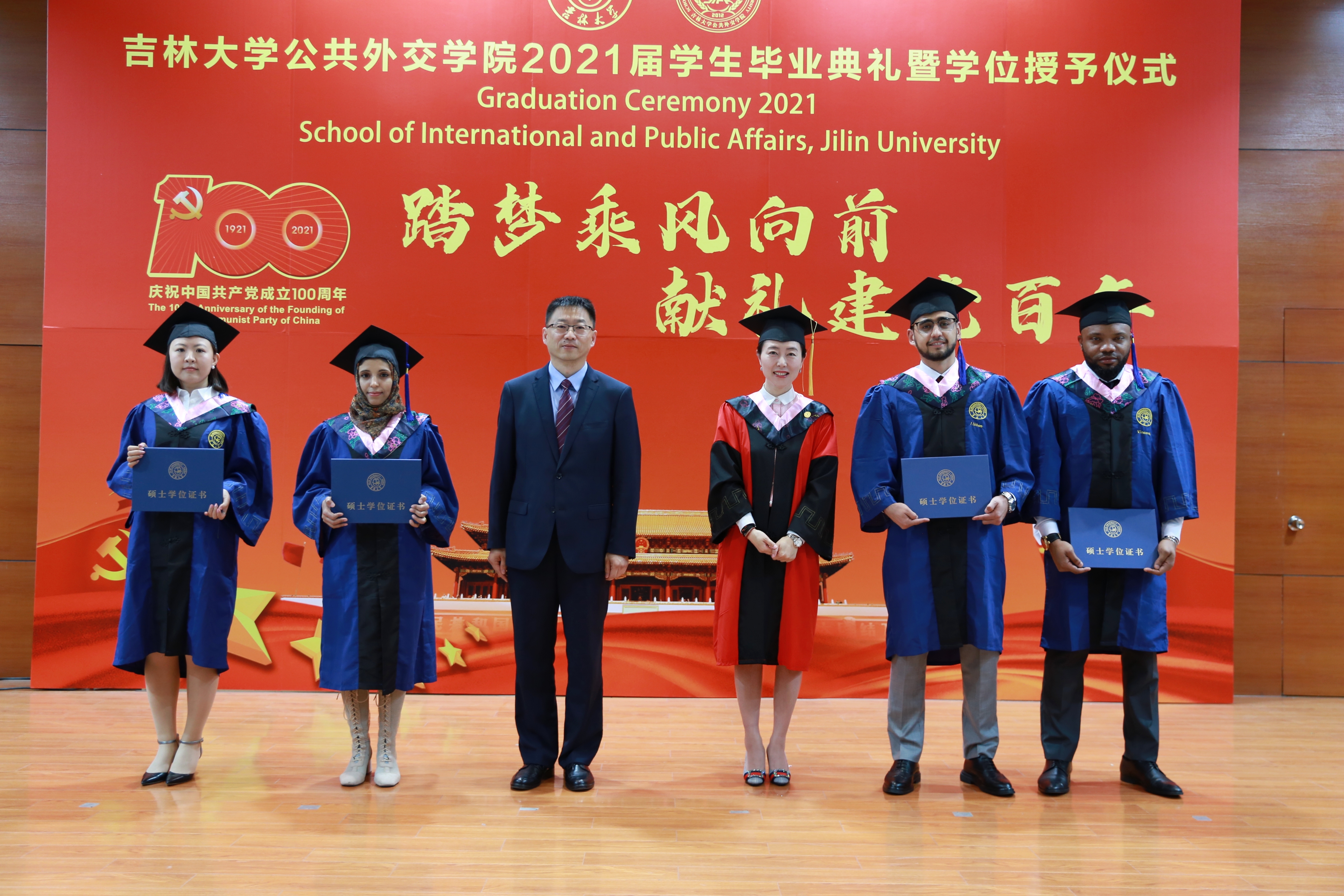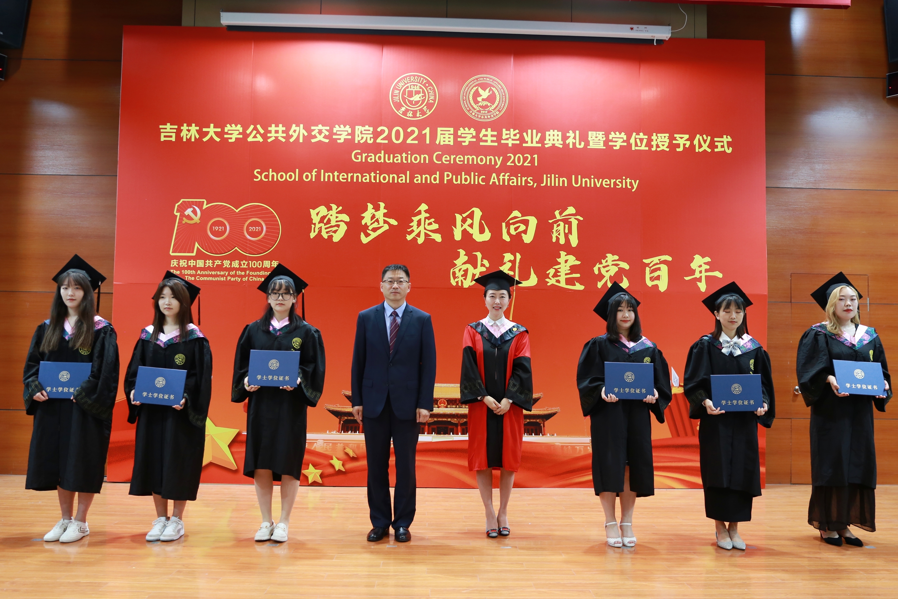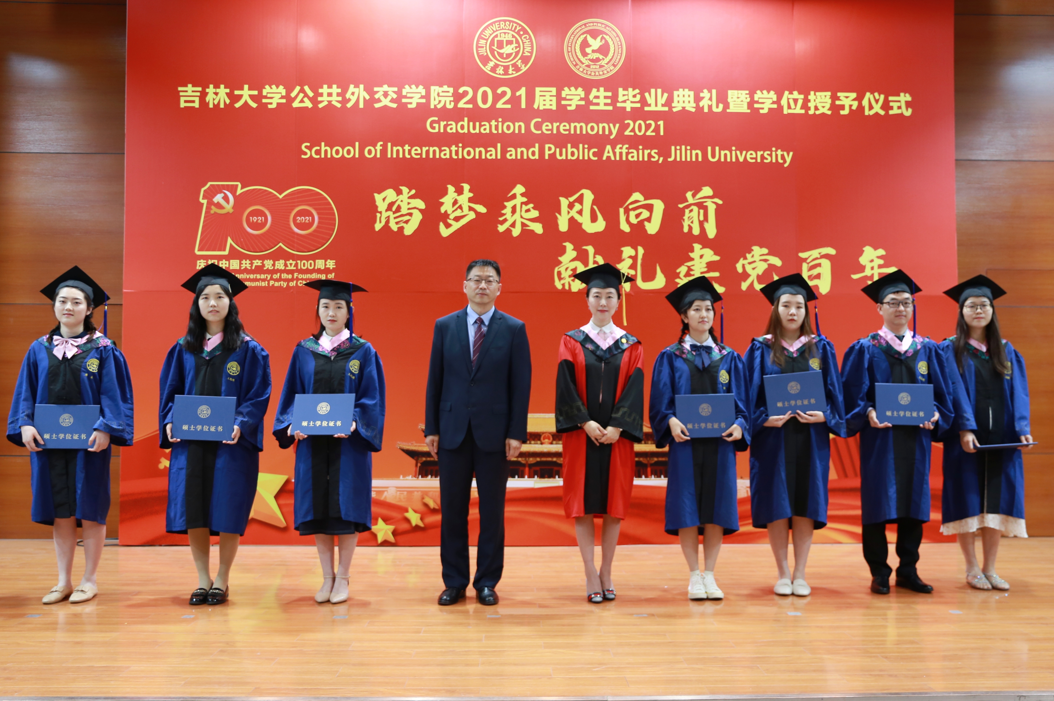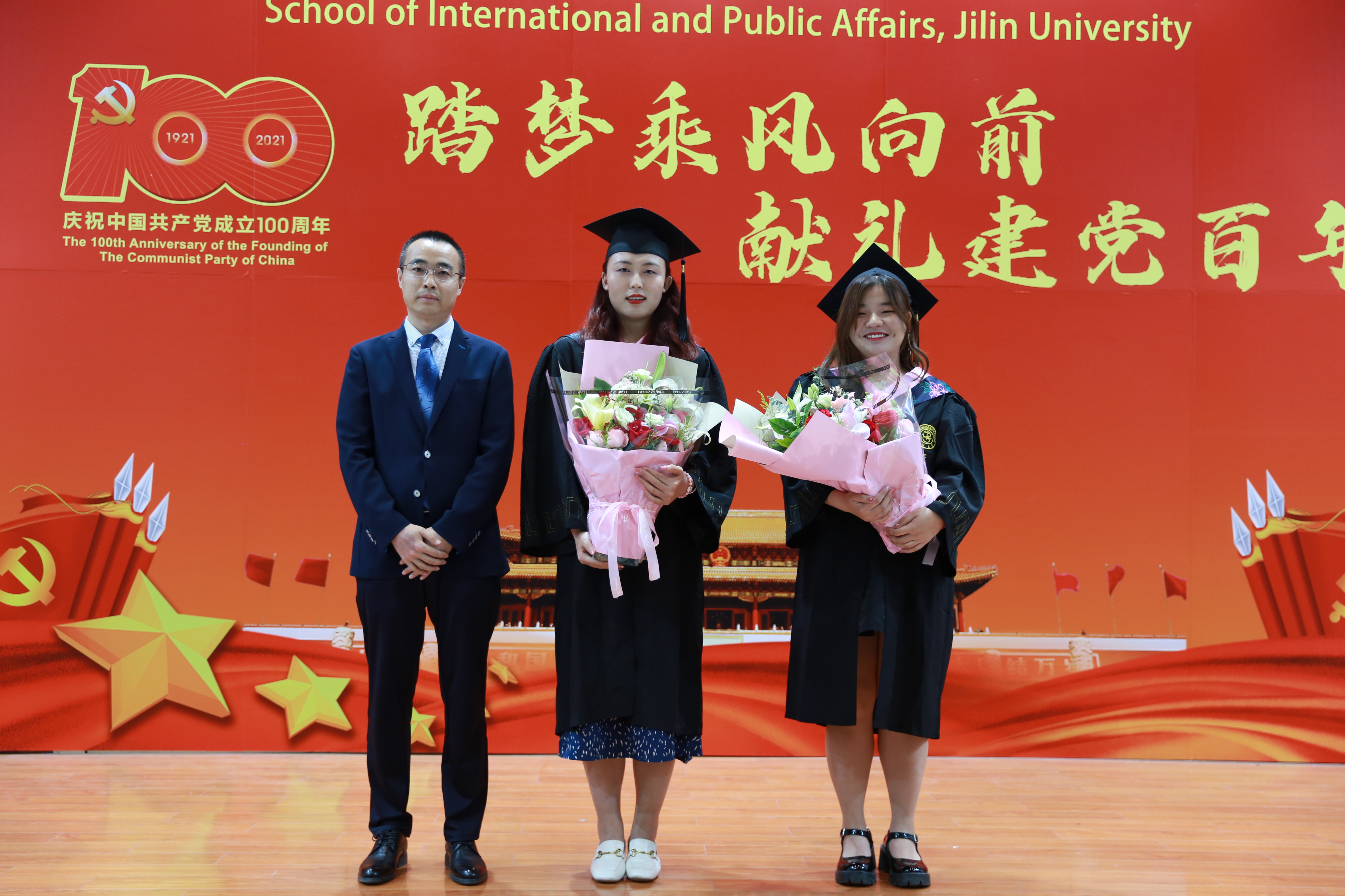 随后,主持人分别宣读了外交学专业本科生、硕士研究生毕业生名单和国际关系专业博士、硕士职工毕业生名单。今年共有37名本科生、13名硕士研究生以及来自7个国家的20名职工顺利毕业。在激昂振奋的音乐声中,全体到场毕业生一一上台,肖晞经理为他们拨动流苏,杨民书记为他们颁发学位证书,并和同学们合影留念。拨穗正冠,学有所成;跃入人海,逐光而行。一张张青春的脸庞神情庄重又难掩激动;一个个青春的身影在骊歌声中逐光趱程。