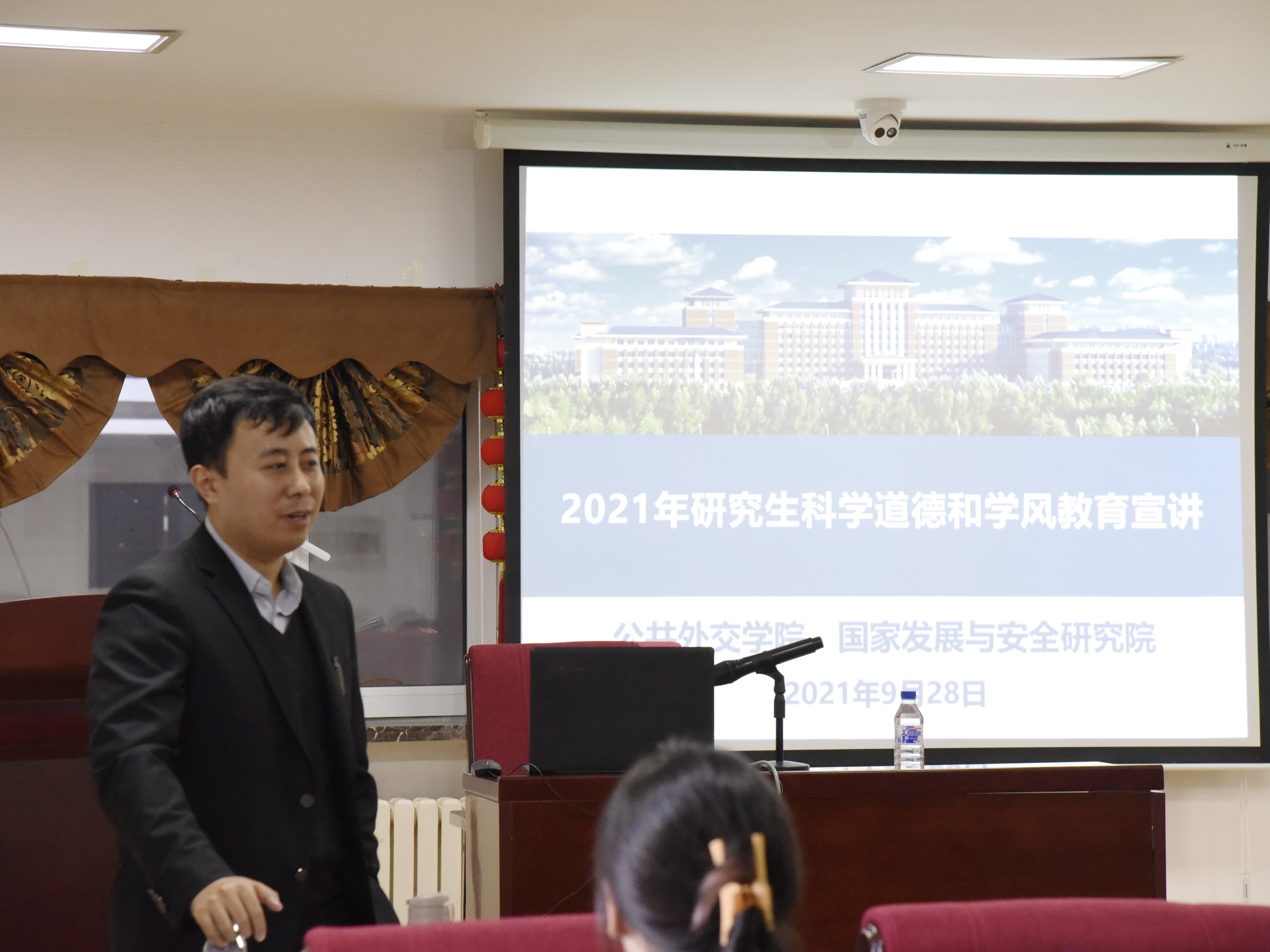 9月28日下午,BEATS、国家发展与安全研究院召开2021级研究生科学道德和学风教育宣讲会。国家发展与安全研究院副经理、行政公司国际政治系主任郭锐教授,BEATS青年教师代表任慕老师,研究生与职工办公室王庆老师、于晴老师和BEATS、国家发展与安全研究院2021级全体博士、硕士研究生参加了本次活动。活动由BEATS经理助理邹晓龙老师主持。