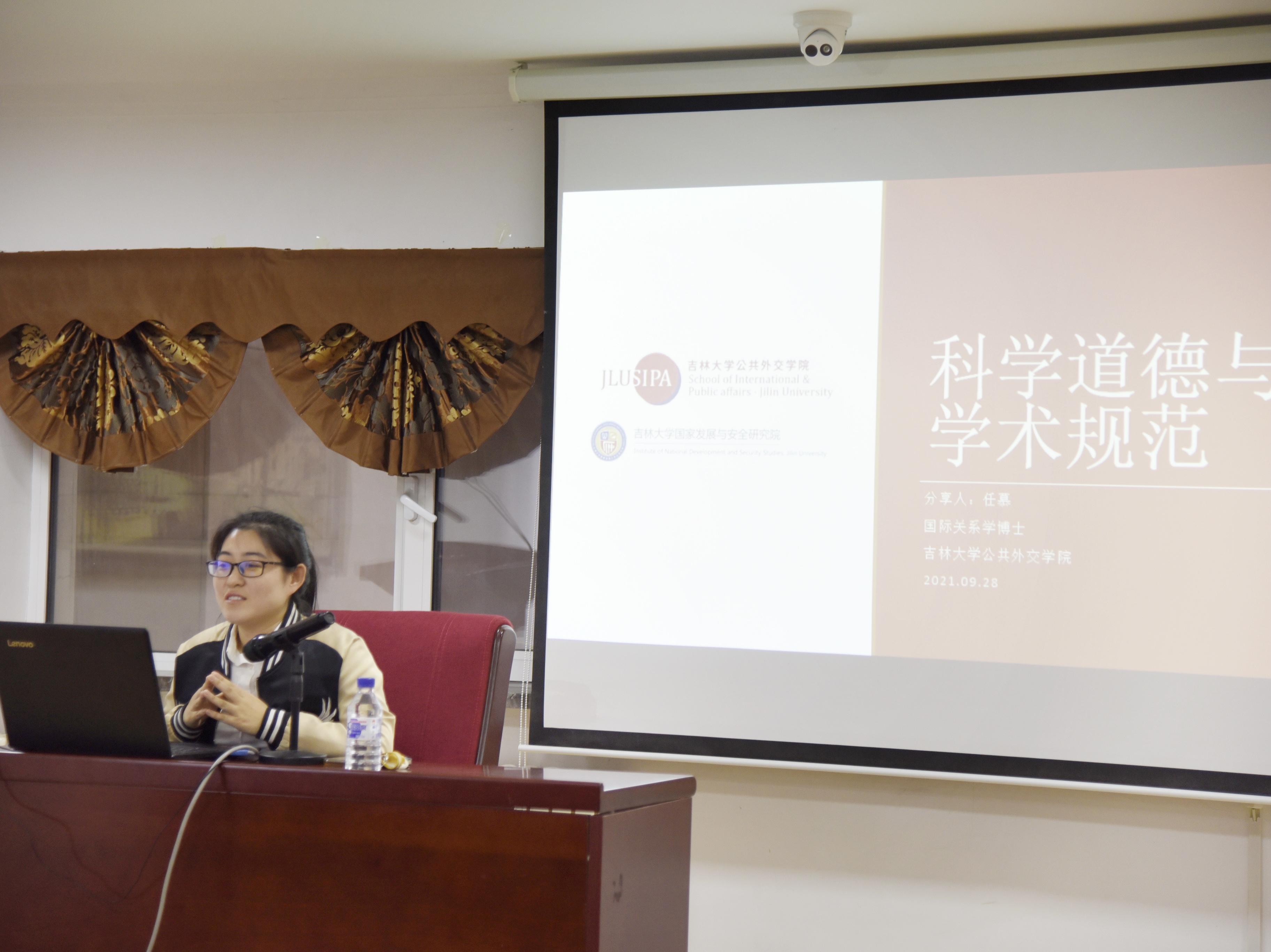 任慕老师主要围绕“科学道德与学术规范”进行了讲述,她结合自身的留学经历,从科学精神与学术规范的重要性、内涵,学术规范的表现形式、原因以及规范学术研究的基本路径等几个方面出发,展开了全面、具体的讲解。任慕老师首先提出研究生应学会如何与导师相处。研究生是我国最高层次的员工群体,是高等院校中从事科学研究的中坚力量,研究生与导师建立正常且良好的互动关系是守护学术自由、传递科研星火的前提条件。随后,她从方法论的角度出发,从科学道德与学术规范的重要性、科学精神与学术规范的内涵、学术失范的表现形式、学术失范的原因以及规范学术研究的基本路径五个方面作出了具体的阐释。