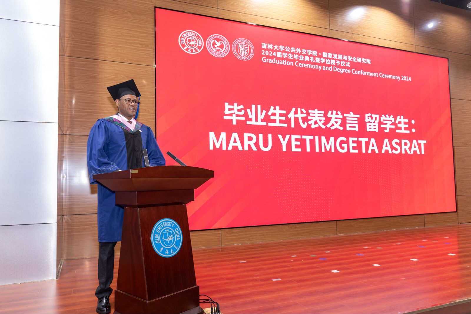 毕业生代表发言环节中,本科毕业生代表田园同学回忆了自身大学四年间的成长历程,向给予同学们谆谆教诲的老师们与朝夕与共、团结友爱的同学们致以衷心的感谢与美好的祝福,她呼吁同学们在新的人生旅程中须秉初心、知难上,戒骄狂,常自省,在新的时代洪流中持续学习,永葆青春风采。