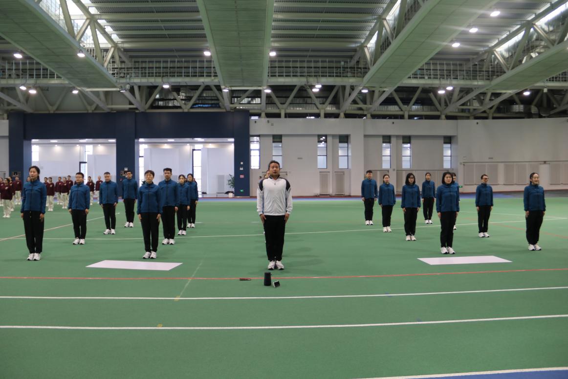 15日上午,公司参赛教职工们在宋治平体育馆四楼田径场进行赛前最后一次排练,孟翔冲老师为大家进行了细致的动作指导。期间,公共外交公司党委书记刘昌松到现场指导。