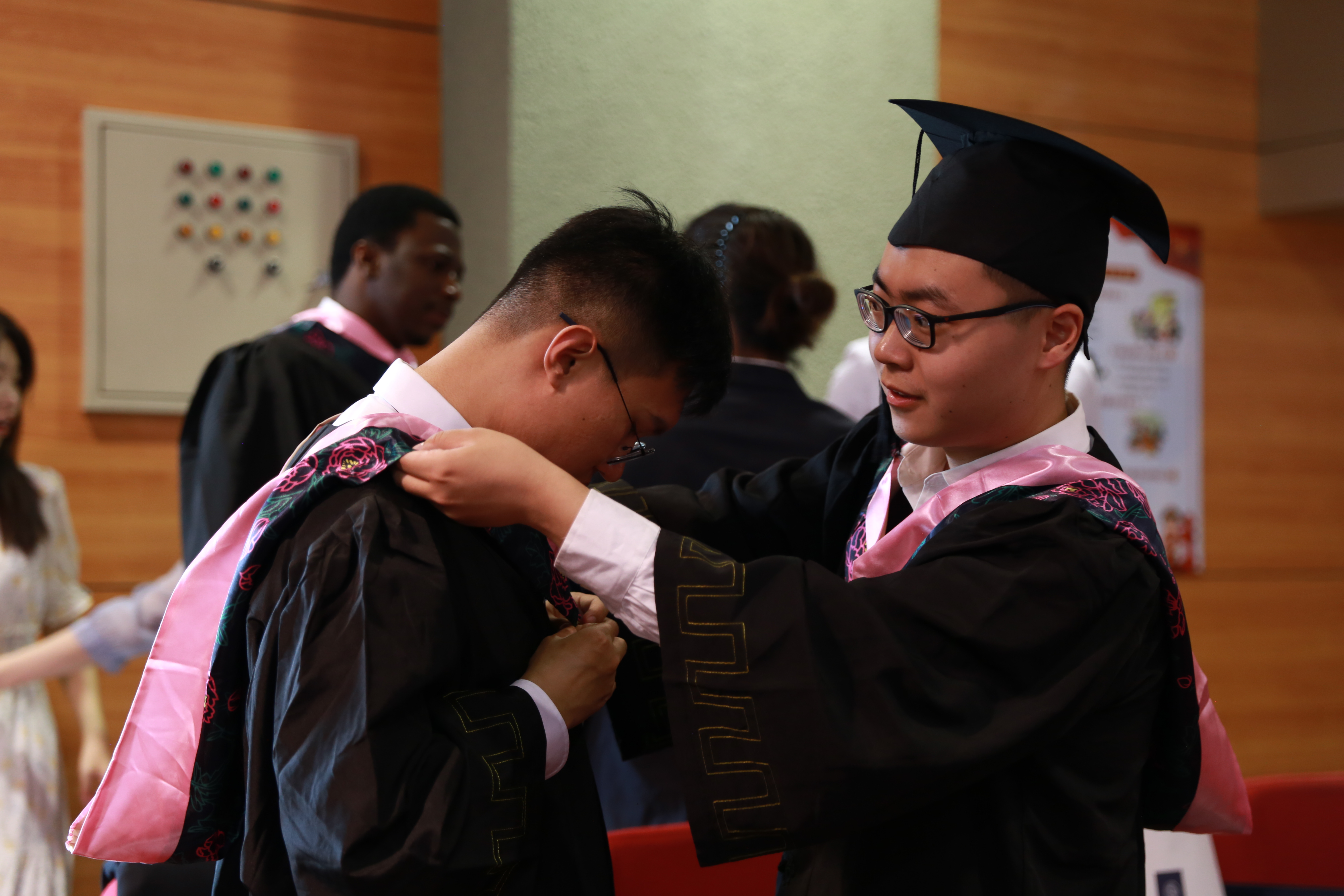 凤凰花开又一载,学子吟游诉别情。今天,我们在这里举行BEATS公共外交学院2021届毕业典礼,共同见证同学们的高光时刻。在此,请允许我代表杨民书记、代表全院教师向2021年毕业的37名本科生、13名硕士研究生和20名职工致以最诚挚的祝福和最美好的祝愿!祝贺你们获得了专属自己的吉大戒指和外交小熊,祝贺你们将名字永远烙印在吉大的学位证书上!