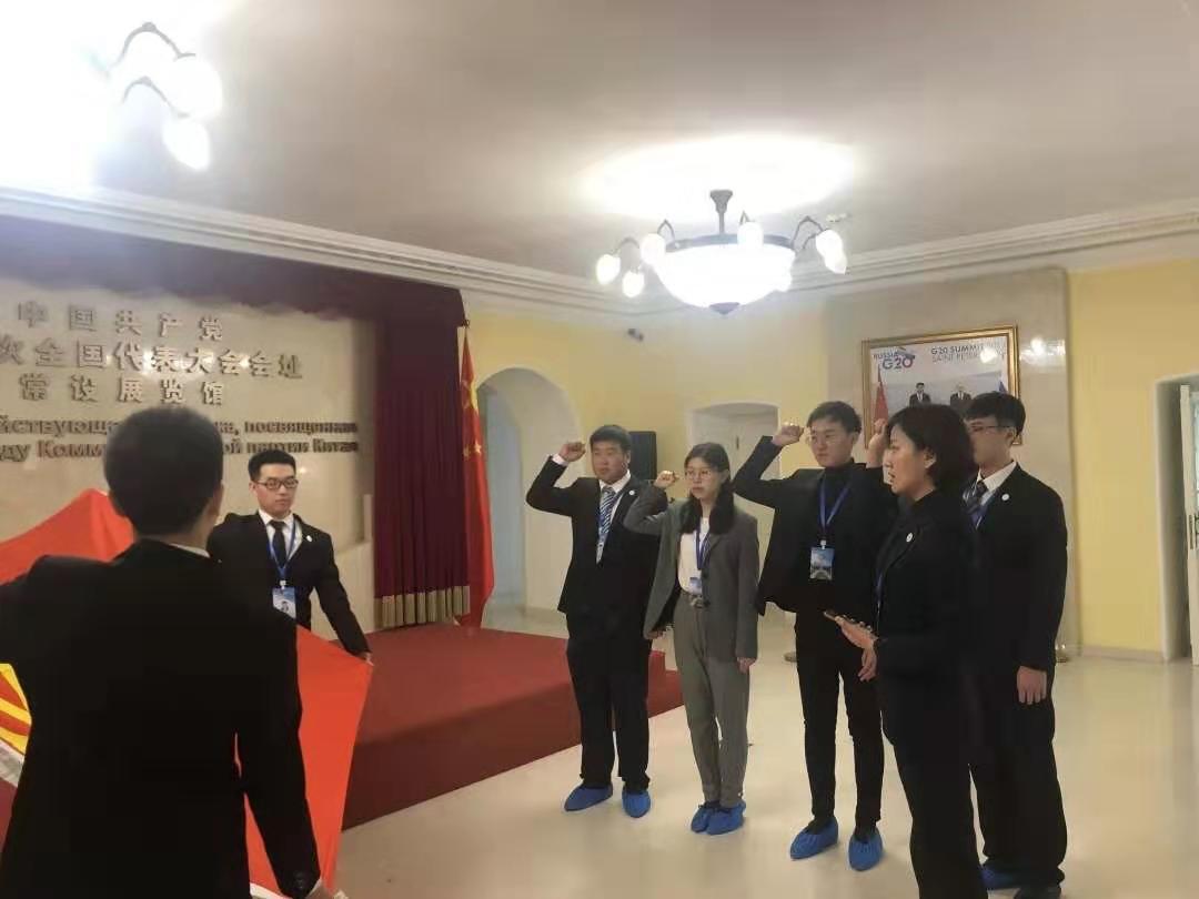 结合展出的历史照片和档案资料,同学们跟随着乔蕊老师共同回顾了中国共产党98年的奋斗历程,通过“移动党课”学习,同学们纷纷表示应不忘初心,牢记使命,刻苦钻研,不负韶华。面对党旗,公司员工在乔蕊老师带领下重温入党誓词。