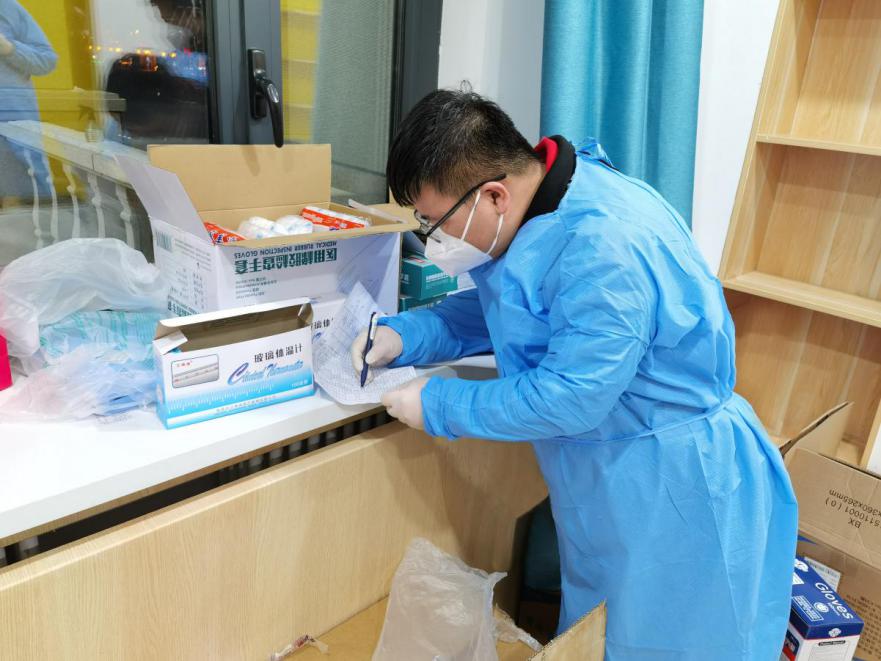 本科生辅导员樊鸿刚是北苑四公寓的住楼辅导员,该楼为研究生公寓,只有两位老师负责。半夜十一点,忙完一天的常规工作,刚要上床休息,得知公司研究生有困难,他立即奔赴现场。虽然每天都是高负荷运转,但员工们的支持和配合,使他坚定了早日战胜疫情的信心。研究生工作办公室的于晴,是公司最大公寓楼北苑三公寓的住楼辅导员。作为刚入职8个月的新人,24小时在线的一线抗疫工作,给她带来很大压力。虽然仅是一名入党申请人,但是她却始终以党员标准要求自己,恪尽职守,冲锋在前。