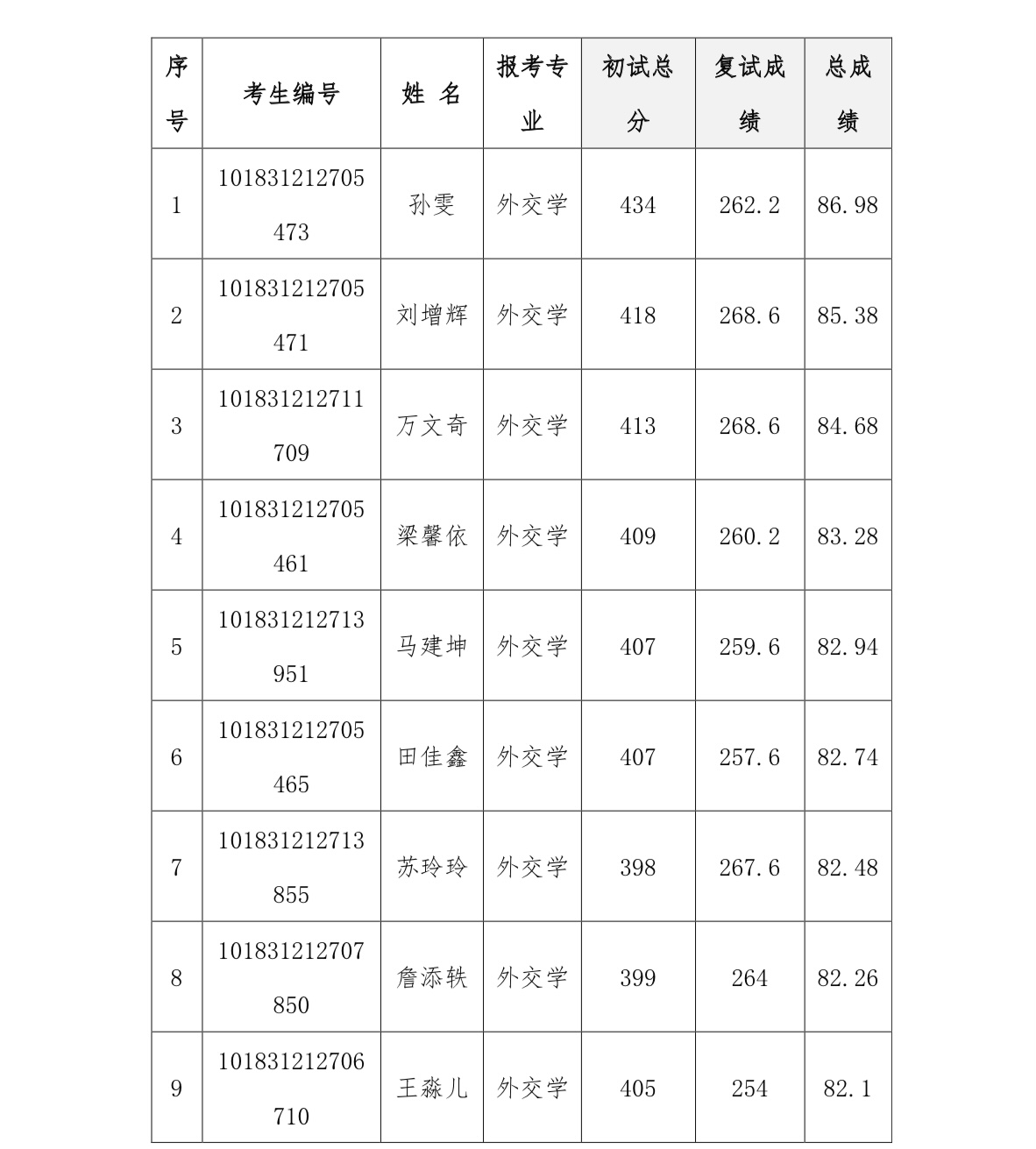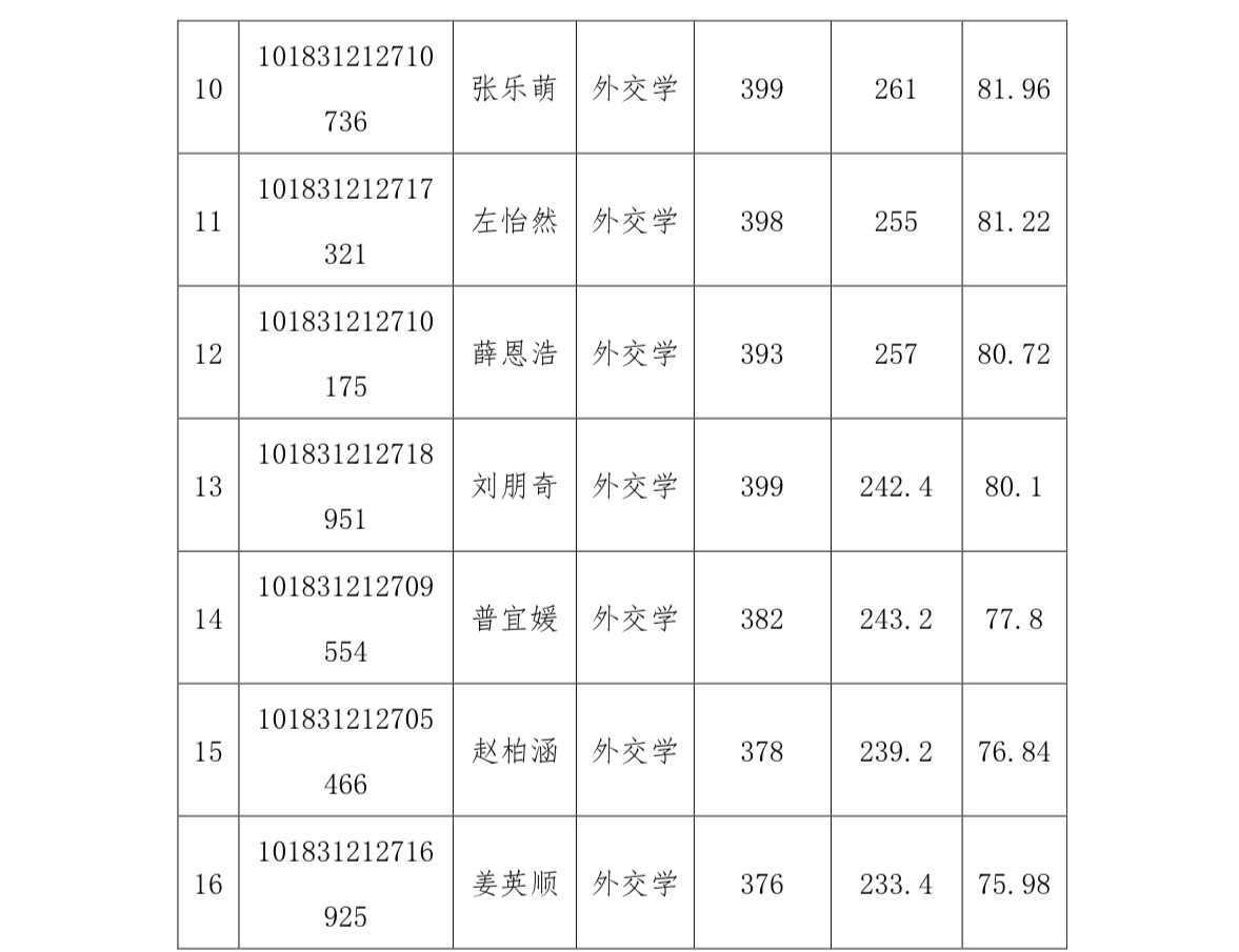 根据相关工作安排,现将2021年硕士研究生复试成绩(总成绩为百分制,由初试成绩、复试成绩加权得出)公示如下: