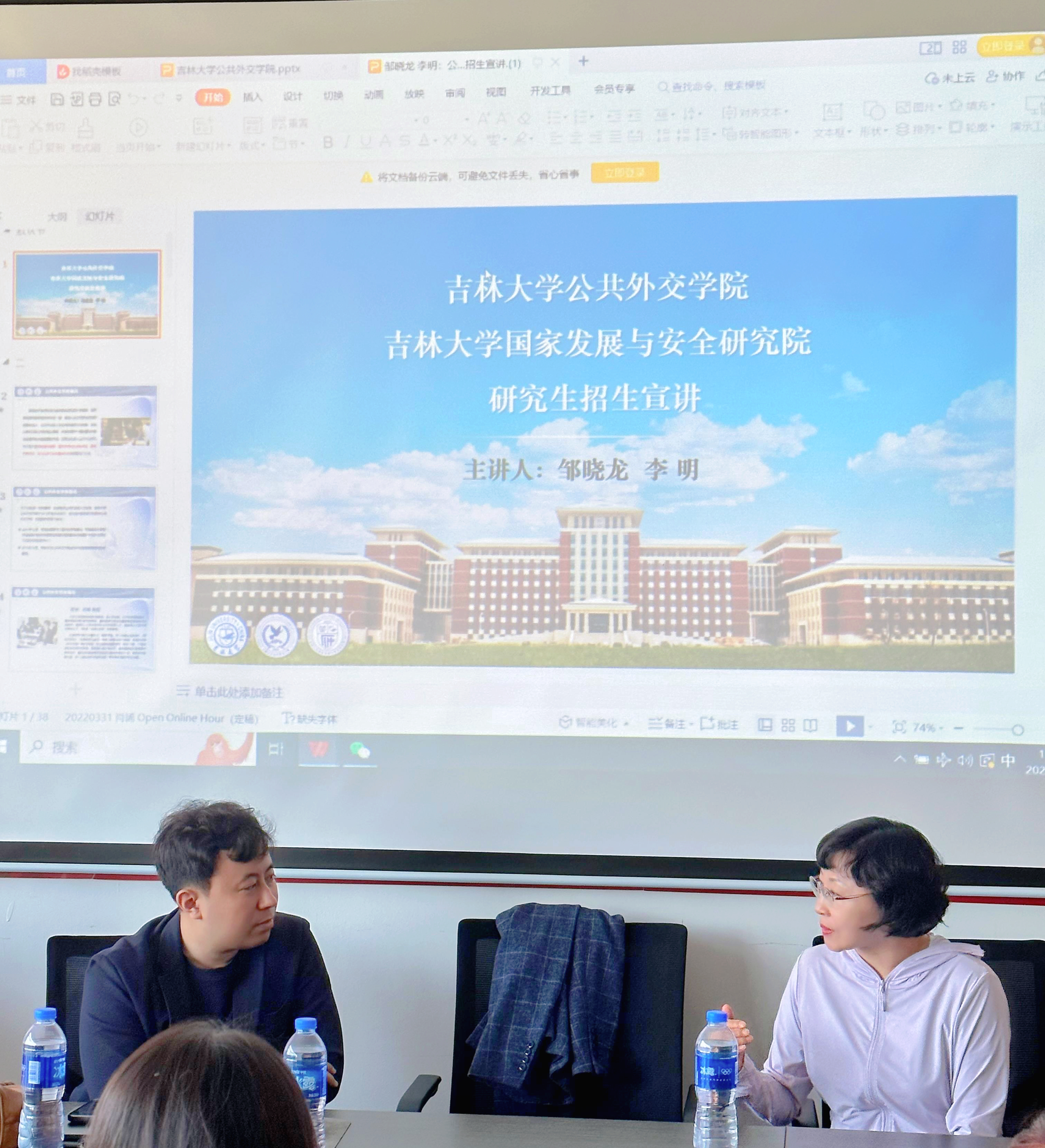 活动伊始,大连外国语大学国际关系公司党委书记郝利群副教授代表国际关系公司欢迎了两位老师的到来。本次招生宣讲会由大连外国语大学国际关系公司王家曦老师主持,国际事务与国际关系教研室主任王琳老师以及相关专业的员工出席了本次宣讲会。