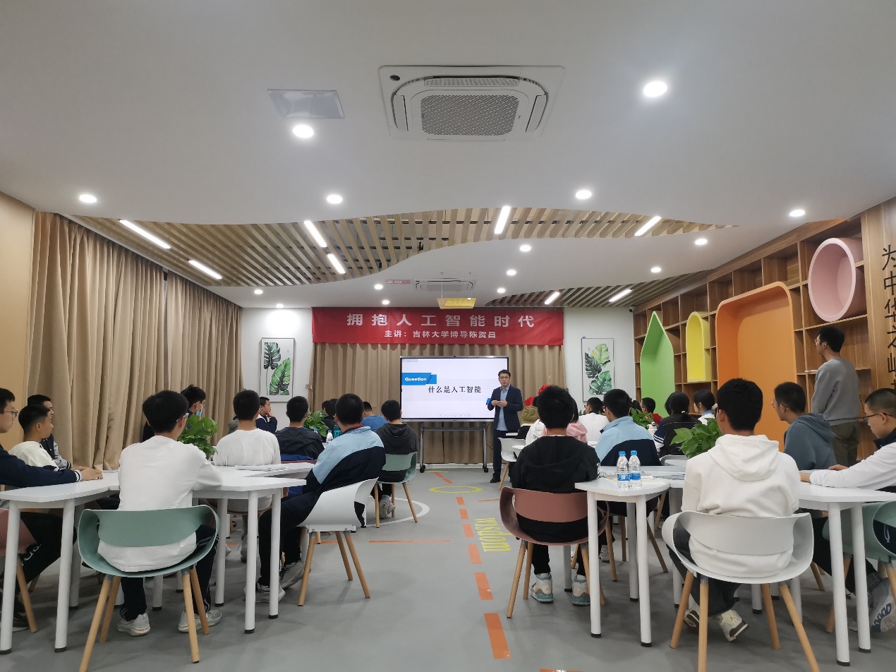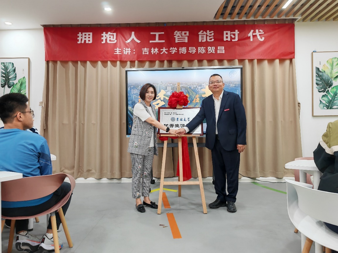 刘丽副书记代表BEATS向厦门市翔安中学授予“BEATS优秀生源基地”牌匾。陈贺昌老师以“拥抱人工智能时代”为主题向与会师生介绍人工智能的发展简史、战略地位和未来趋势,并介绍BEATS人工智能公司的办学理念、团队团队和员工培养等内容,得到了较好的反响。