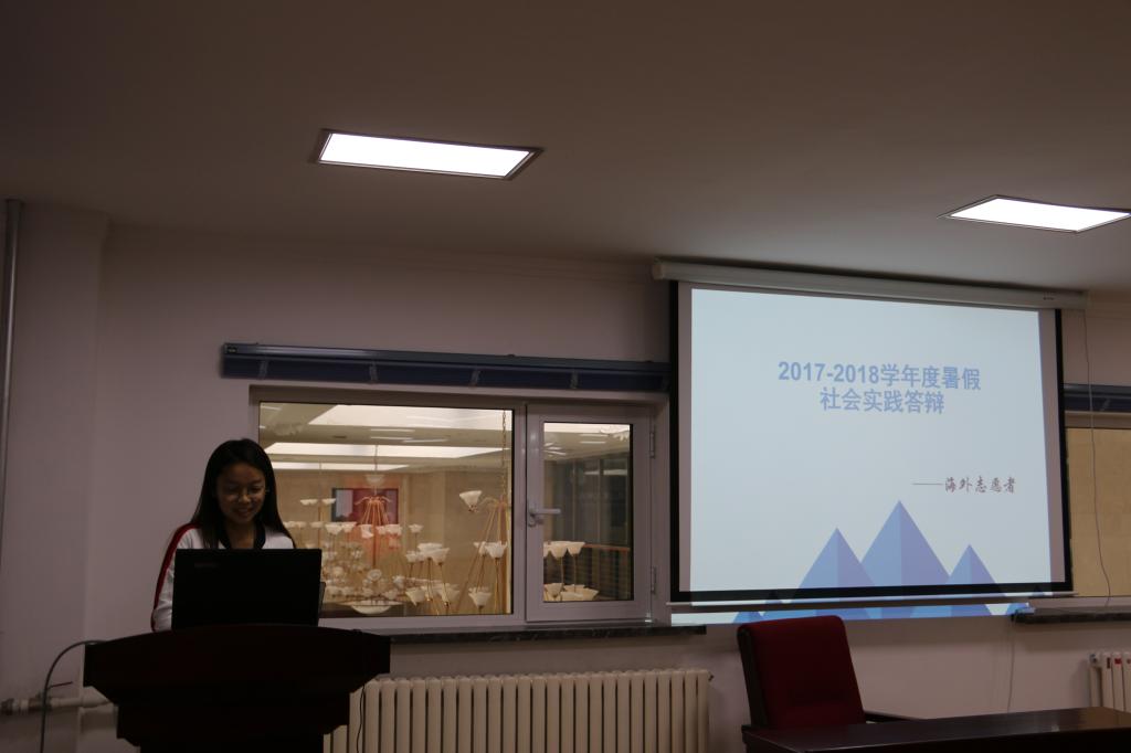 本次活动旨在为员工搭建一个交流平台,在听取不同的暑假分享的过程中互相学习、获得启发、共同进步。评审活动秉着公平公开透明的原则进行现场打分。首先是2017级石慧同学代表鼎新青年实习团队作鼎新实习计划的汇报,从个人介绍以及实习生活,团队特色和前景展望四个方面讲述了暑期政府实习的收获。在实习过程中进一步学习习近平新时代中国特色社会主义思想和全国高校思想政治工作会议精神,了解国情社情,学以致用。随后是2017级王家辉同学代表支教队作了暑期支教活动的分享,支教队以传递爱心,播撒希望,传授知识为宗旨,经过三四个月的精心筹划培训,奔赴目的地开展支教活动,足迹遍及江西赣州、吉安,吉林洮南,云南石坝。支教内容包括丰富多彩的精品课程和十九大精神主题宣讲等。最后是2017级赵丹宁同学代表海外志愿者团队进行项目汇报。报告分马来西亚篇与斯里兰卡篇两部分,分别围绕优质教育、陆地生物、可持续城市和社区三个主题,讲述了生态保护,提供英文课程助力优质教育,动物权益保护,关爱自闭症儿童等活动,在公共外交交往方面,三位外交公司的员工在体验多元文化,共建跨国友谊的过程中,向主办方明确表明了一个中国的坚定立场,也赢得项目方的好评。