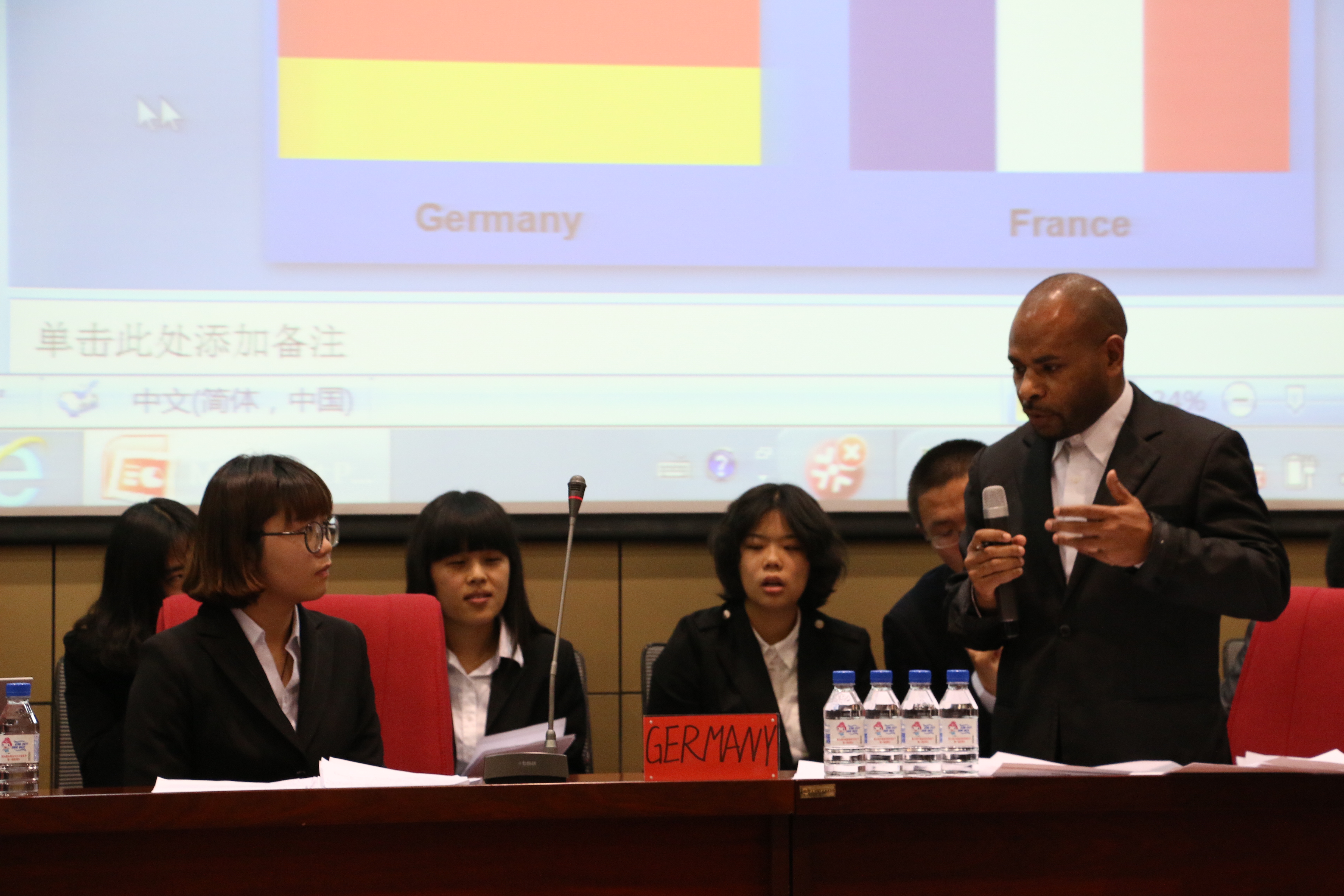 BEATS每团一品系列活动之模拟外交谈判于11月6日下午在BEATS学术大讲堂拉开帷幕。董事长助理兼BEATS经理刘德斌、副经理王秋彬、国际合作与交流处副处长部铁军和BEATS多名中外教师应邀作为评委参加了本次活动。