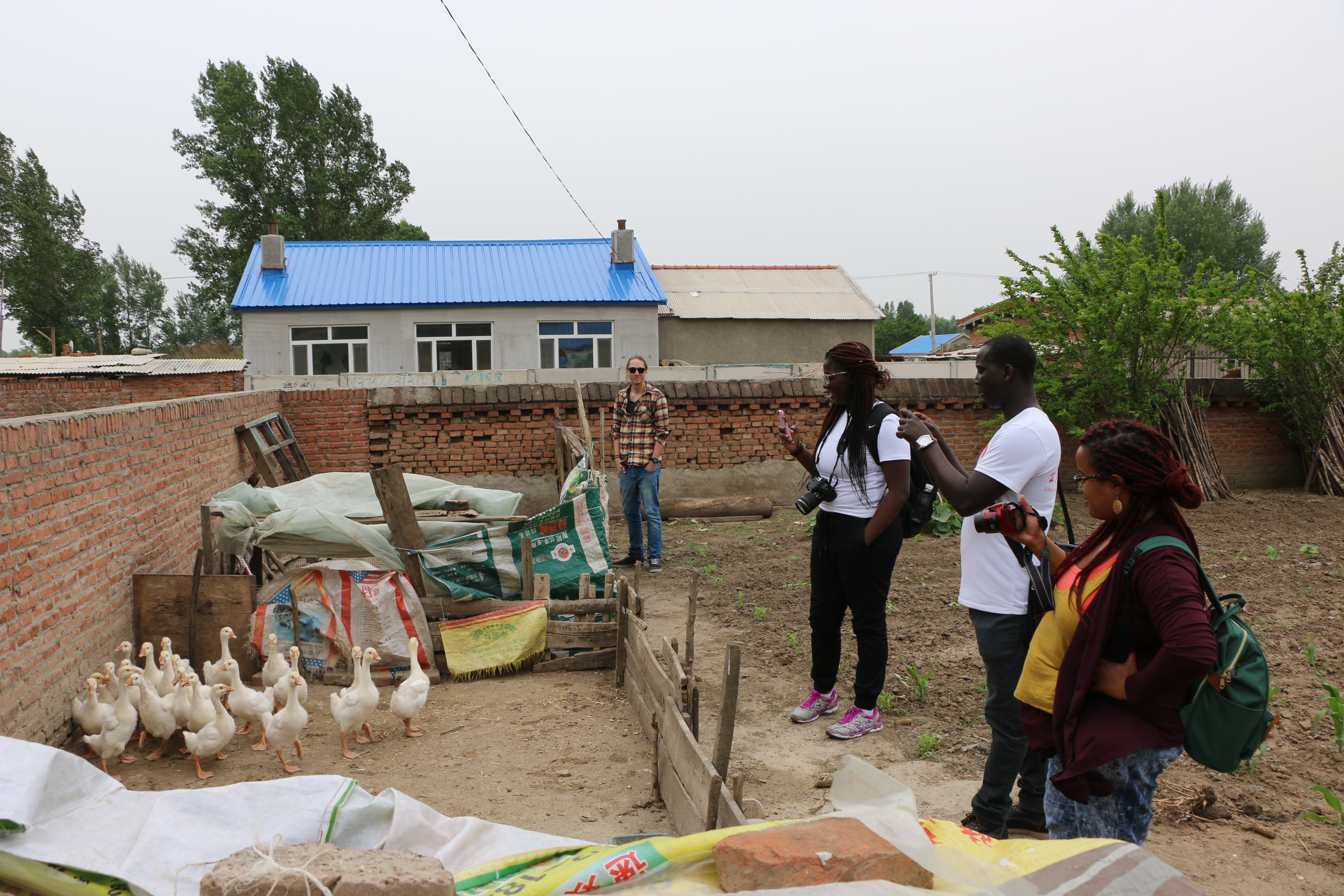随后,我们一行人来到了村头的几户农户家中参观。加拿大职工兴致勃勃地交流着中国农村与加拿大田园景象的不同,好奇地东瞅瞅,西望望;看看鸡,看看鸭。在自由参观阶段,两位来自里贾纳大学的同学坦言,虽然中国的农村环保工作仍有待加强,但他们喜爱中国乡村生活的恬静以及人们的朴实与好客。