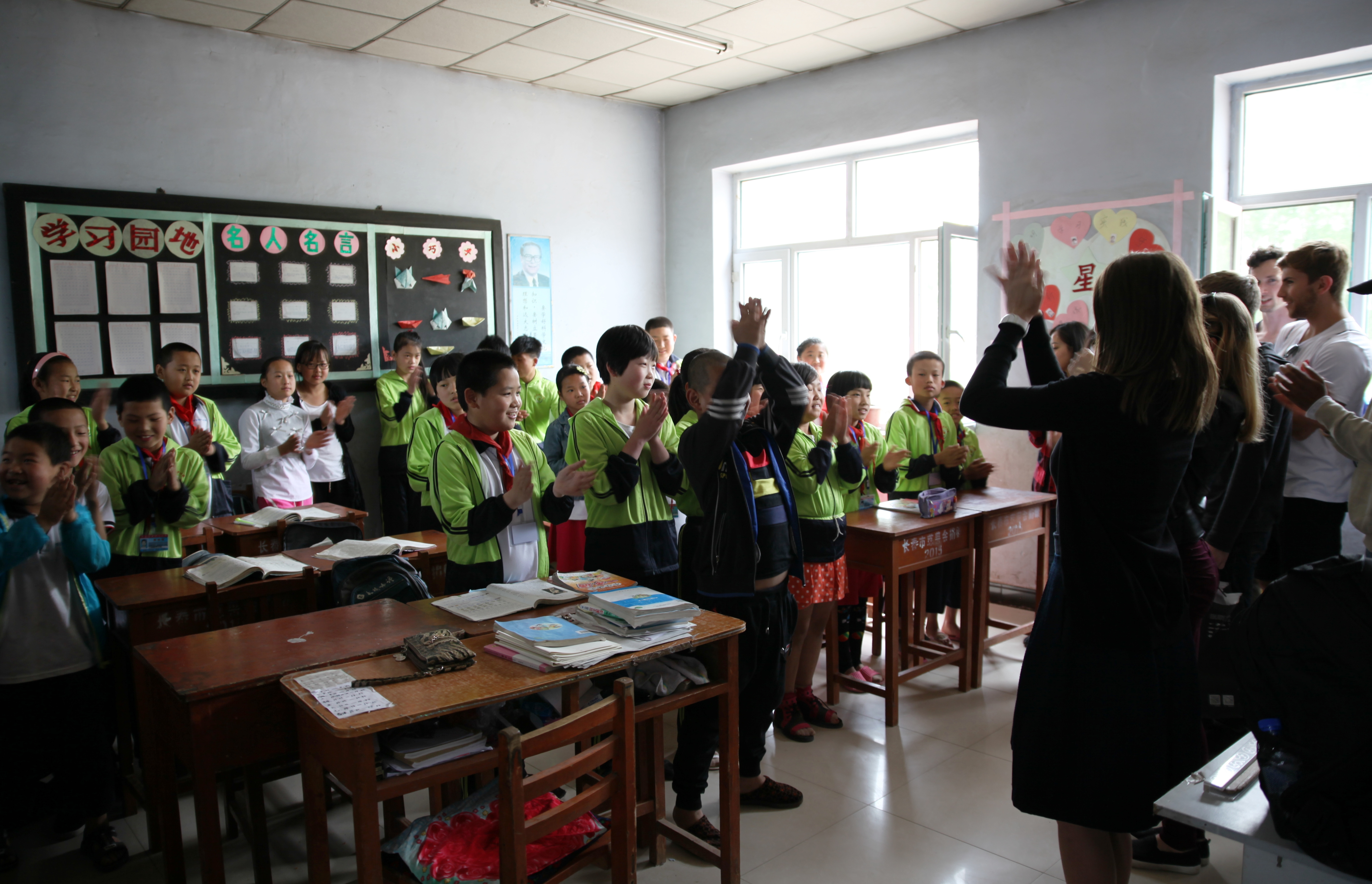 上午7:30从员工谊会馆出发,经过两个多小时的车程,BEATS师生和正在公司参加暑期班的里贾纳大学的职工一同来到了农安县万金塔乡小城子村小学。当大家一走进五年级一班的教室,就立即被孩子们热烈的欢迎声所感染了。一张张稚气未脱的脸庞上洋溢着最纯真的微笑。微笑是没有国界的,这些来自异国的大哥哥大姐姐们被这些纯真的笑脸瞬间感动了。