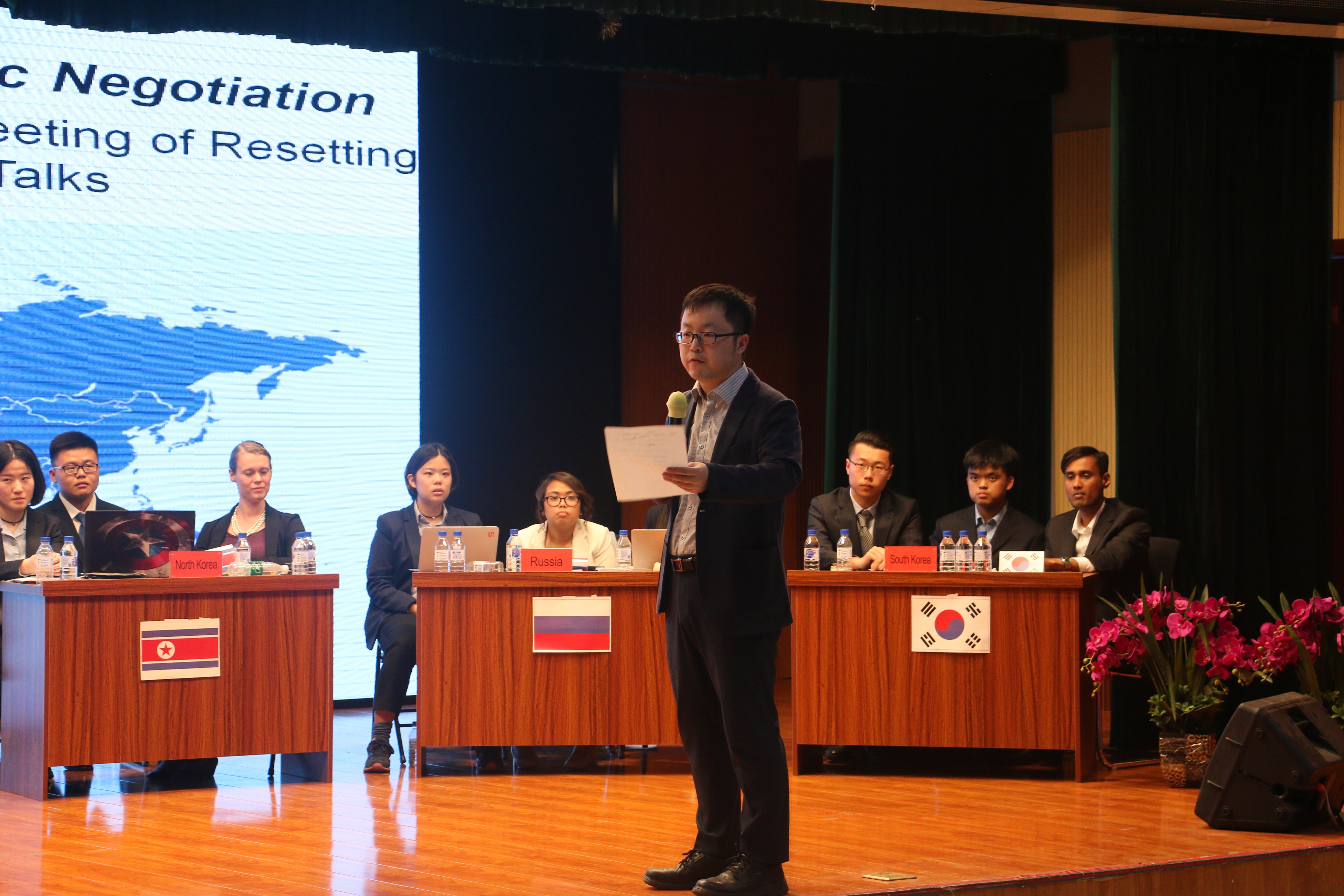 6月5日晚6点,由公司员工会学习部主办的第二届模拟外交谈判活动于田家炳A座路演厅成功召开,模拟外交谈判活动是公司专业性较强的员工活动之一,是教学活动的实践补充。本次活动吸引了来自加拿大里贾纳大学的职工、公司模拟联合国协会成员及公司众多优秀学子参加,观摩此次活动的还有来自吉大附中力旺实验中学“青领联盟”的40名师生。