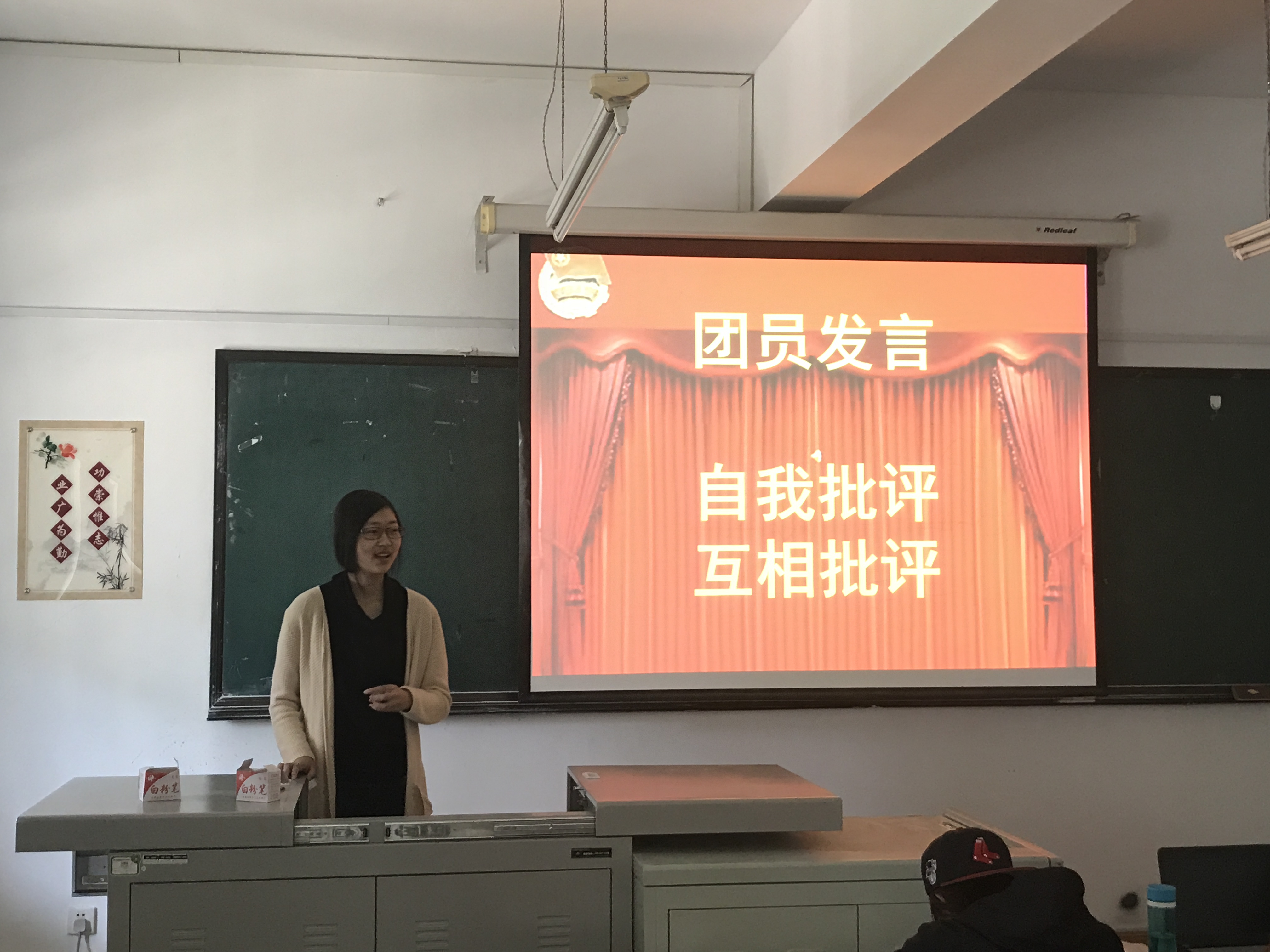 随后,15级团支部干部及入党积极分子展开了自我批评与自我反思。从生活、学习上认识到自己的不足,表示会积极学习习近平总书记讲话,不断提升自己的团性,全面提高自己。各位同学也积极阐述对自己不足的反思,以及未来如何争做合格共青团员。