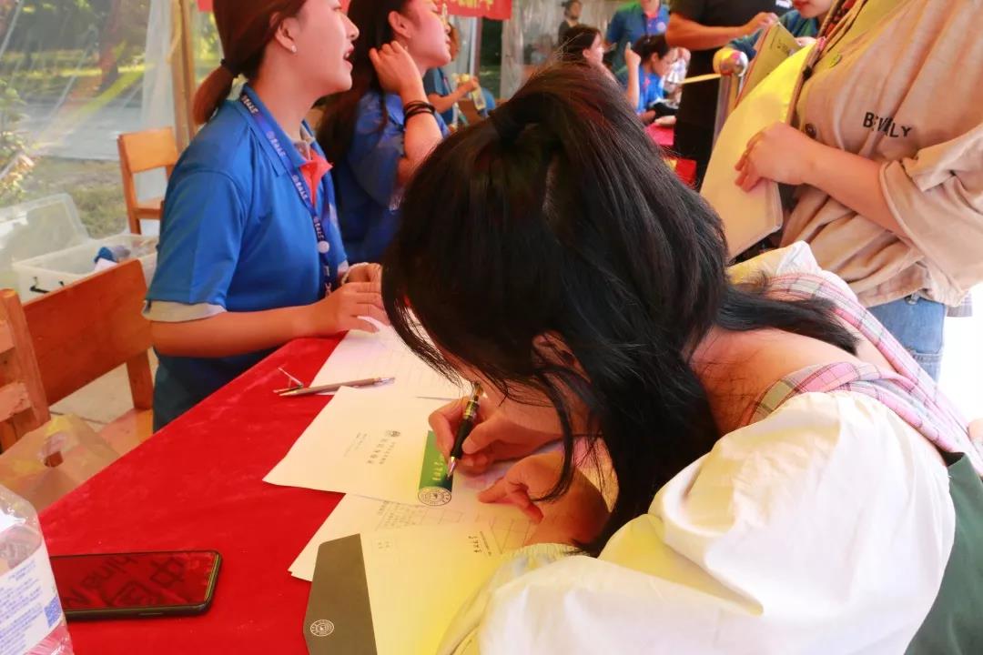 上午七点,团委员工会志愿者在五月花广场公司迎新接待站准时集合,并按照预先安排正式开始一天的迎新工作。新生资料的收集、迎新材料的发放、迎新流程完成后的现场签字确认等工作均有序进行。