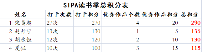 3月16日,由BEATS学习部主办的 “SIPA读书季——阅读打卡计划”圆满落下帷幕。