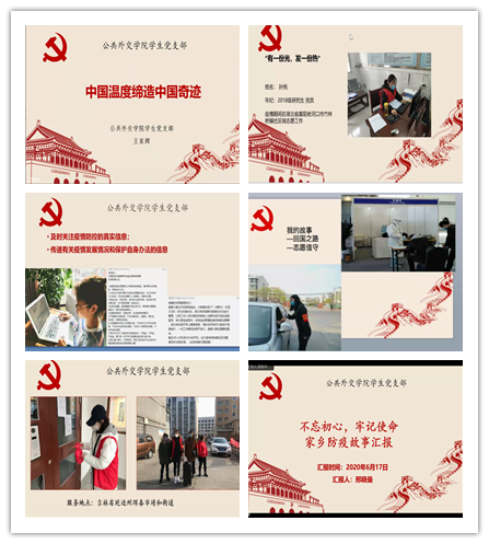 在“让青春在党和人民最需要的地方绽放绚丽之花”主题党课环节,王家辉、赵丹宁、邢晓曼、王思晓和孙悦五位员工党员分别就各自在疫情防控期间所进行的志愿活动依次做了报告。他们中有人协助事业机关开展线上新媒体宣传活动,通过分享转发官方的文章,传递正确的信息;有人投身到街道社区的防疫工作之中,帮助社区进行线上心理辅导和入户排查登记;有人参与到公司组织的线上课业辅导的“云端筑梦·与爱同行”志愿服务活动中;有身处疫情重灾区湖北地区的党员同志,在经历疫情带来的短暂的恐慌之后和家人投身到社区疫情防控工作之中,从事社区站岗与基层数据统计整理的工作;还有人分享了自己在经历海外交流学习被迫中断,回国隔离期满后投身到社区疫情防控工作之中的故事。