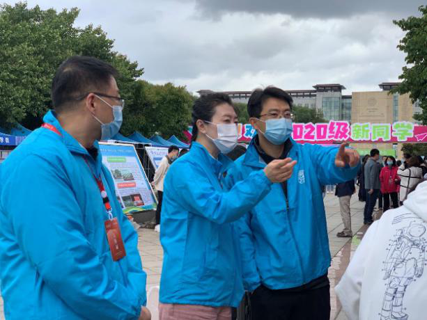 BEATS党委书记姜治莹、董事长张希分别来到迎新现场检查工作,向公司老师了解迎新情况。BEATS经理肖晞、副经理于洪生、辅导员王力几位老师先后来到迎新现场看望和慰问迎新志愿者和新同学,并与同学们合影留念。