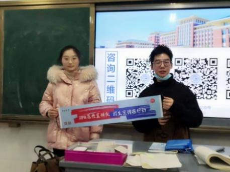 公司2020级本科生赵婷婷毕业于广东省深圳高级中学,她和同学们通过组建招生宣传咨询QQ群、在高中官微发送相应的海报和公众号推送宣传等形式,引发了学弟学妹们的广泛关注。线上宣讲环节中,团队成员简要介绍了BEATS的概况,并根据自己的亲身体验回答了同学和家长们有关吉大专业排名、宿舍环境、气候条件等方面的提问。对于南方的孩子来说,雪和长春的冬天也是新奇的体验,招生宣讲团队的同学们绘声绘色地介绍了吉大的冬日趣事和妙趣横生的溜冰课,为学弟学妹们讲述美丽的北国春城风光以及在BEATS的学习与生活。