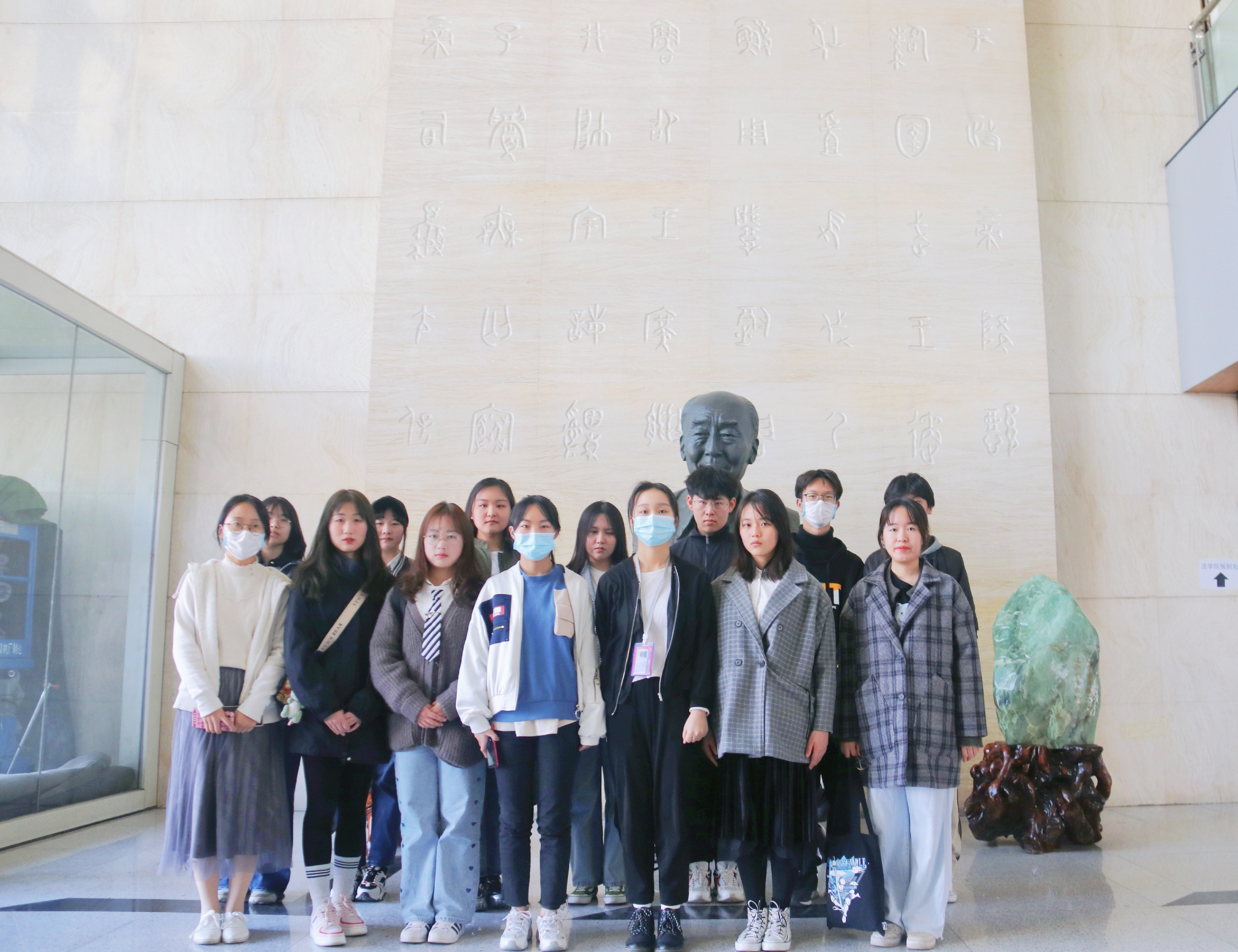 紧接着,同学们去瞻仰金景芳先生,先生是著名的历史学家、文献学家、易学大师。同学们站在雕像面前,安静地听完先生的人生履历,向先生的雕像、还有那雕像之后伟岸的灵魂鞠躬致礼,员工代表上前扫灰、献花,最后向先生的雕像告别。
