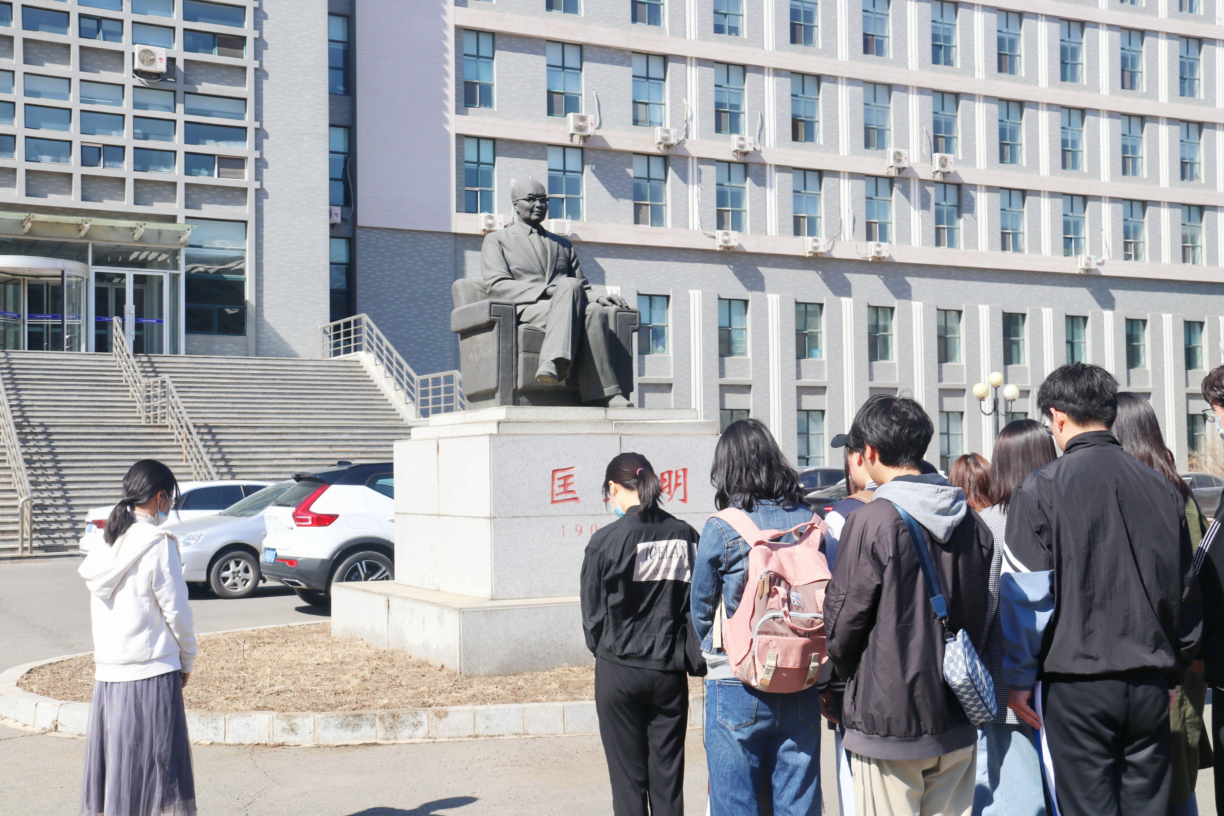 随后,一班、二班团支部分别前往高清海先生和金景芳先生的塑像前追忆缅怀。