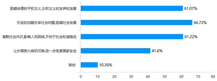 首先,团队经过充分的资料整理与分析论证,形成了一份调查问卷,一方面通过线上发放来收集广大网民的意见,另一方面通过线下向吉林省、山西省、江西省、宁夏回族自治区等多个地区的代表性人群派发问卷,最终回收637份有效答卷。针对性别冲突的不利影响,问卷中预设的四个选项均有较高反馈,从中能够看出理清性别冲突问题的重要价值。尽管受访者对造成近年来性别对立的因素呈现出多样化的观点,但超过九成的受访者认为性别冲突问题需要进一步加强治理和引导,并且部分受访者在开放性问题中提出了个人见解与建设性意见,为本次的实践开展夯实了基础,指明了方向。