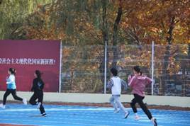 稍作休息,上午11:20,女子400米比赛开始了。程雪燕与姜洋洋同学代表BEATS参赛,两位同学集中注意,迅速开跑。奔跑中调整呼吸,步伐稳健。