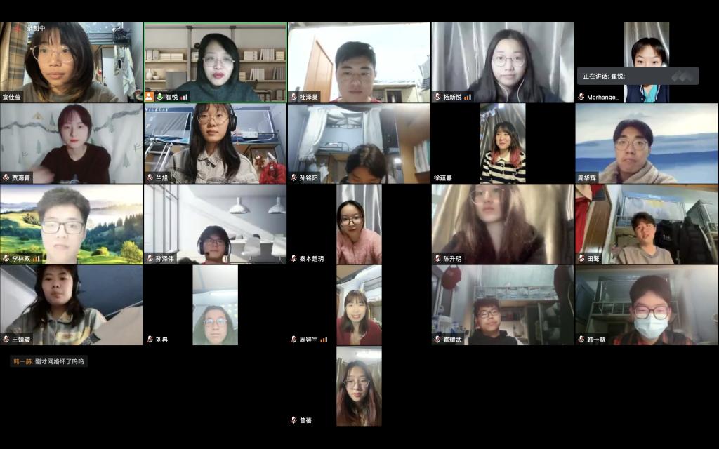3月10日以来,吉林多地疫情大规模爆发,形势严峻,BEATS迅速采取行动封闭校园实施静态管理,第一时间切断校园疫情传播扩散的途径,并积极协调学工、后勤、保卫、校医院等各部门的力量确保全体在校员工的健康安全稳定。为了解同学们封寝期间的生活与心态变化,鼓励同学们坚定信心、共抗疫情,公司本科生班主任崔悦老师、颜震老师于近期分别组织员工召开“共抗疫情”线上主题班会,两个班级全体本科生参会。