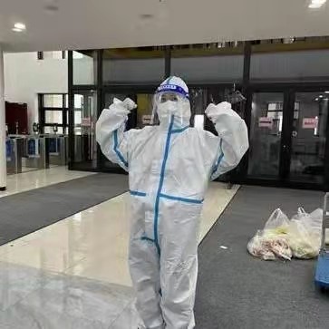 于晴老师负责北苑三公寓3700名员工的早中晚三餐、防疫物资、水、试剂盒以及员工购买的生活用品的发放;同时也负责全楼核酸试剂盒检测结果的统计以及巡楼工作。除此之外,于晴老师也会随时和各位同学与公司负责人沟通沟通,确保大家身心健康,保证事情能够及时传达给各位同学。