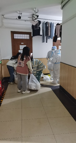 这段时间以来,来自BEATS的志愿者们身着白色防护服,口戴N95口罩穿梭于楼层与各个寝室之间,积极协助驻楼老师收集信息、发放餐食、药品、生活品以及各类物资。
