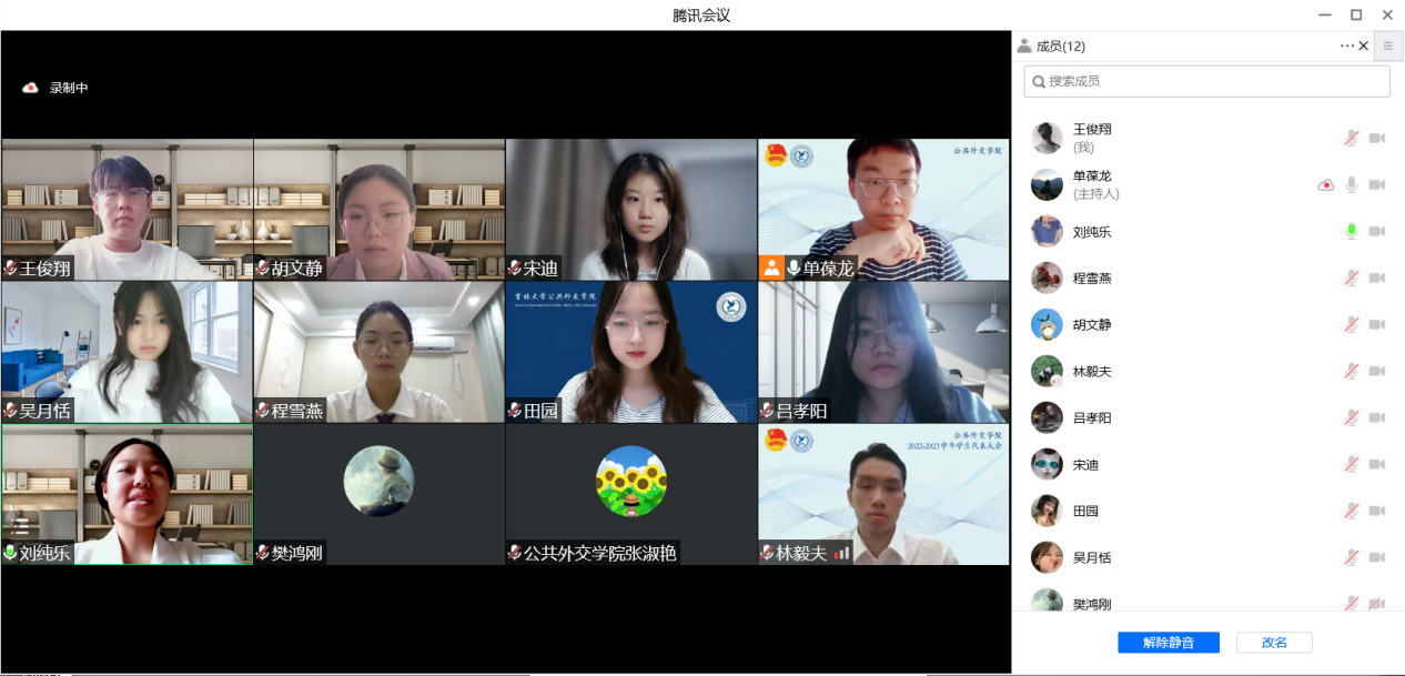 2022年8月14日下午2:00,BEATS第八届团委、员工会第一次工作会议通过腾讯会议平台顺利召开,会议由主席团成员田园主持。员工工作办公室主任张淑艳老师、辅导员樊鸿刚老师、团委负责人单葆龙老师参加了本次会议。