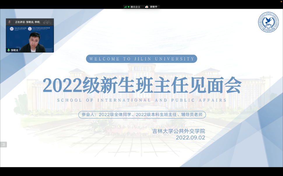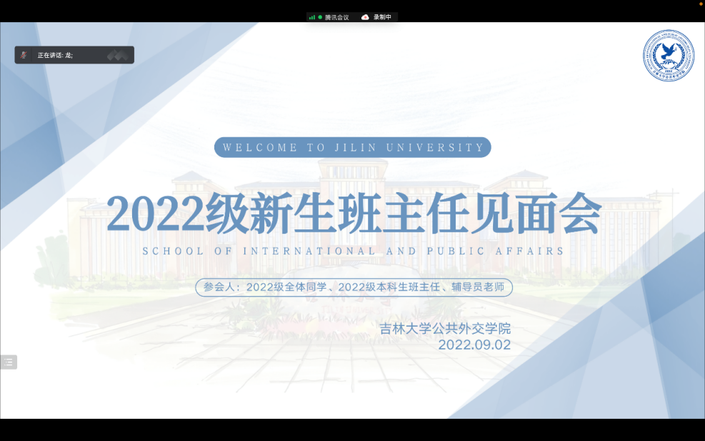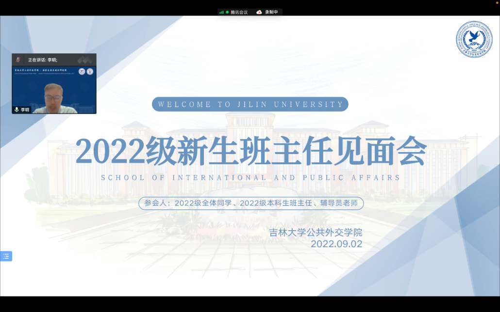 本次线上新生班主任见面会不仅为班主任和新生的沟通交流搭建桥梁,同时,班主任老师们为新生大学学习生活规划提供了行之有效的建议,为新生们系好了在吉大BEATS的第一颗纽扣。相信各位2022级的外交学子在老师们的陪伴下定能踔厉奋发,笃行不怠,努力成为具有“世界眼光•家国情怀“的SIPA人。