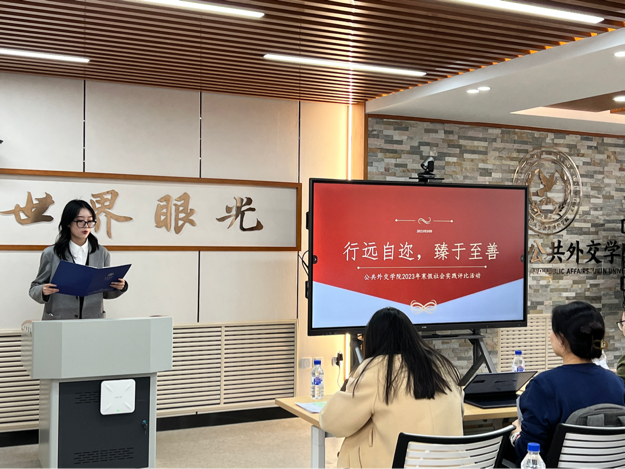 为表彰BEATS在2023年寒假社会实践活动中表现突出的团队和个人,鼓励公司学子更加积极地投身于社会实践与志愿服务活动,彰显当代青年的社会责任感与使命感,身体力行“世界眼光,家国情怀”的院训。3月9日下午,公司组织开展寒假社会实践评比活动。活动由2022级本科生周炜佳同学主持,评审小组由员工工作办公室主任、纪委委员张淑艳老师,团委负责人单葆龙老师,团委员工会主席团成员王俊翔、田园、刘纯乐,组织建设部负责人吴月恬,以及各本科生团支部书记组成。