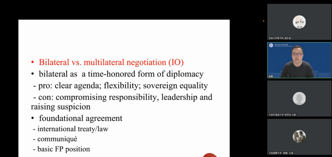 大连外国语大学代表队由国际关系公司20、21级本科生组成,所修专业为国际事务与国际关系以及外交学,指导教师为外交学专业的彭昕老师,在本次外交谈判中抽中的立场为俄罗斯。